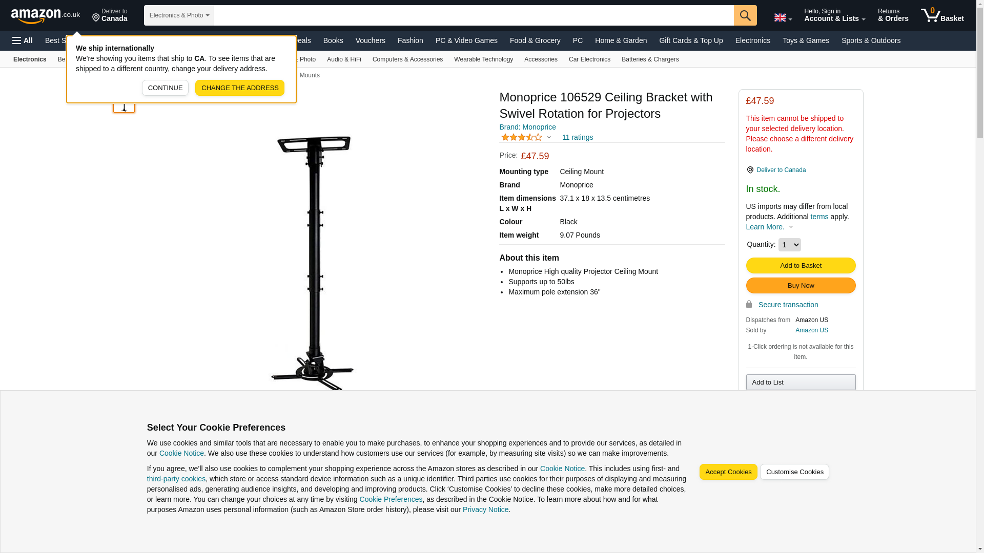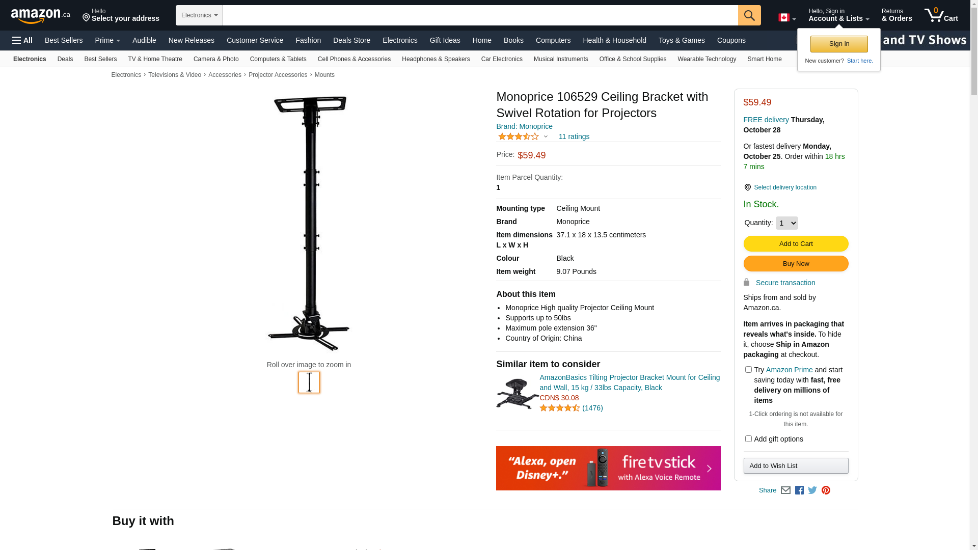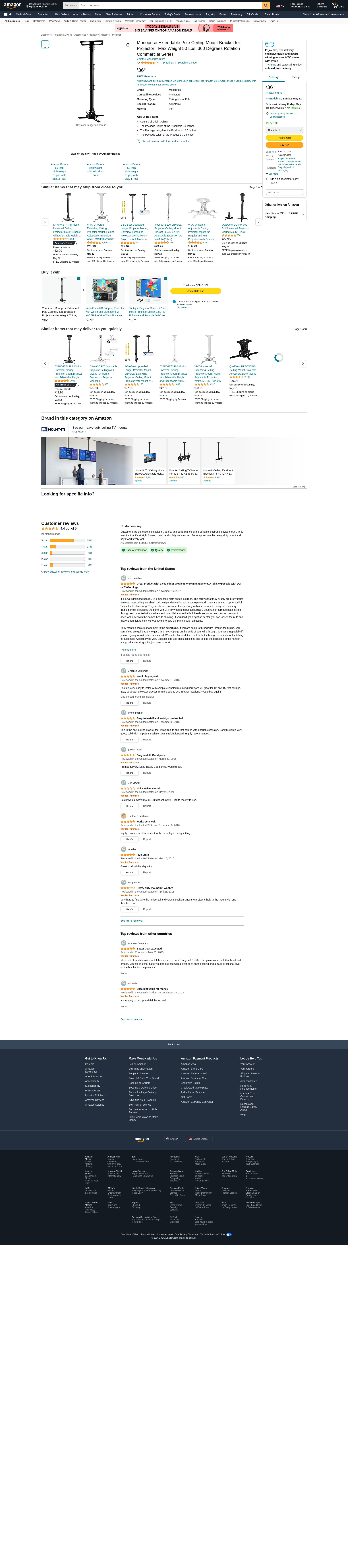 Buy Monoprice Extendable Pole Ceiling Mount Bracket for Projector - Max Weight 50 Lbs, 360 Degrees Rotation - Commercial Series: Projector - Amazon.com ? FREE DELIVERY possible on eligible purchases