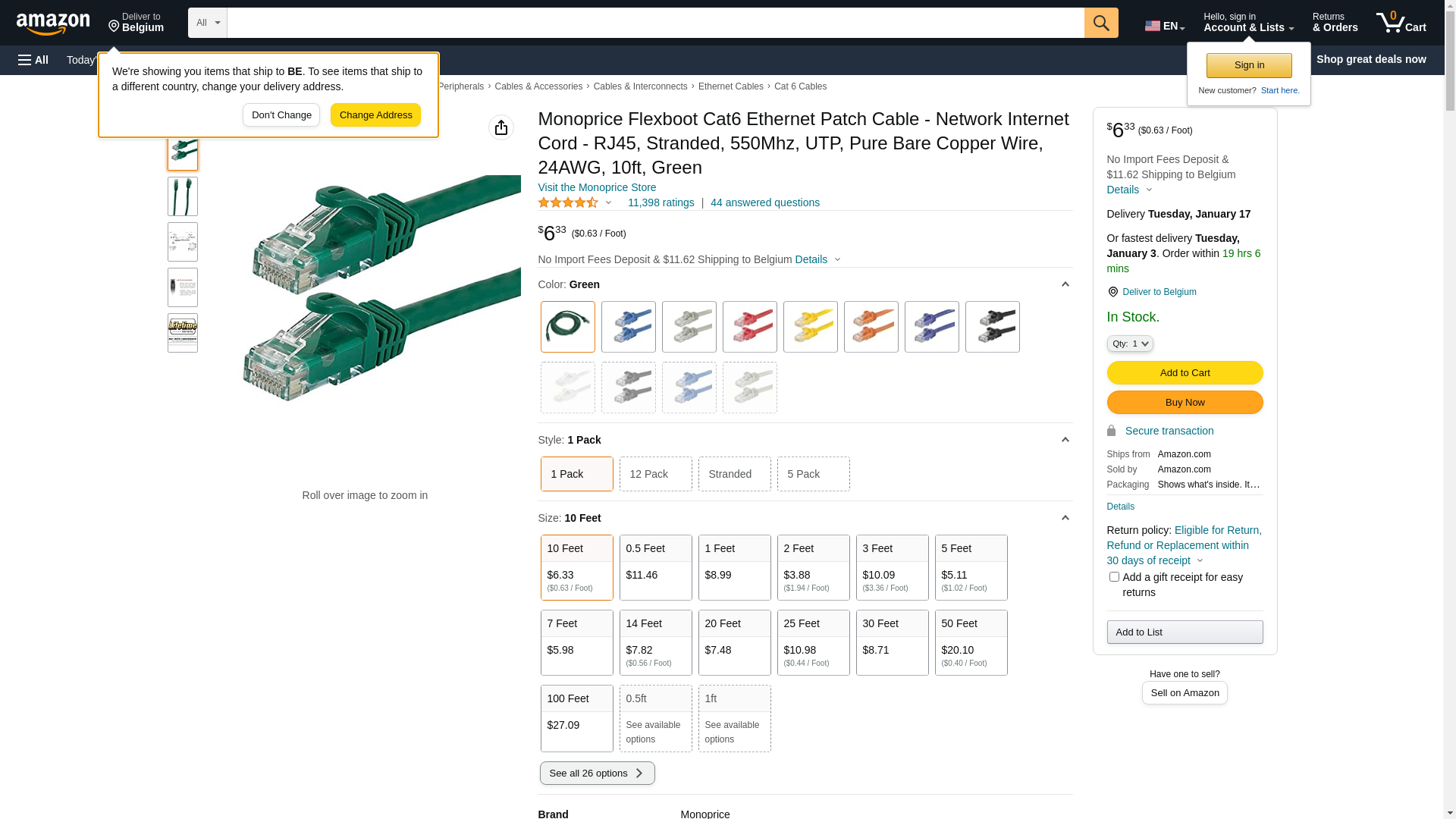Monoprice Cat6 Ethernet Patch Cable - RJ45, Stranded, 550Mhz, UTP, Pure Bare Copper Wire, 24AWG, 10 feet, Green - Flexboot Series