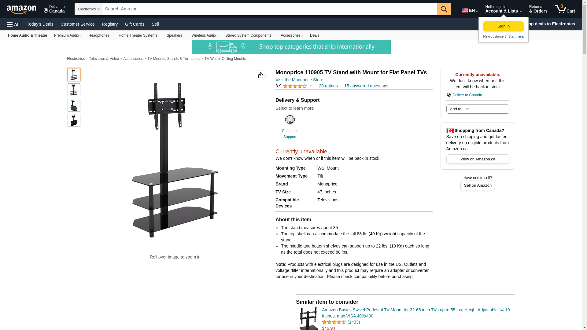 Monoprice 110905 High Quality TV Stand with mount for Flat Panel TVs. The stand measures about 35. The top shelf can ...