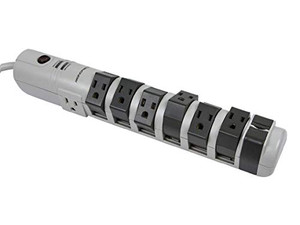 - This model features eight protected power outlets, six of which can rotate 180°