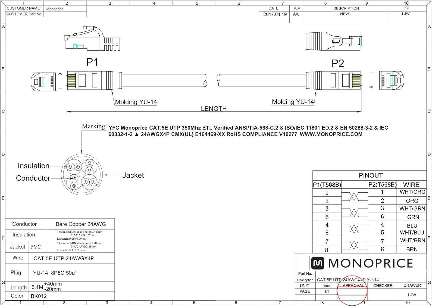 Monoprice Cat5e fixed length network cables are the perfect combination of value and performance. Available in a large assortment of colors and lengths, we have a cable to fit every situation. Each cable is made of 24AWG stranded pure bare copper conductor pairs with 50m gold plated contacts (short body). Most budget cables skimp with only 10m. Each cable features color matched, snagless strain relief boots.Monoprice cat5e and cat6 cables are made of 100 percent pure bare copper wire, as opposed to copper clad aluminum (CCA) wire, and are therefore fully compliant with UL Code 444 and National Electrical Code TIA-568-C.2 fire and safety standards, which require pure bare copper wire in cat5e and cat6 communications cables.