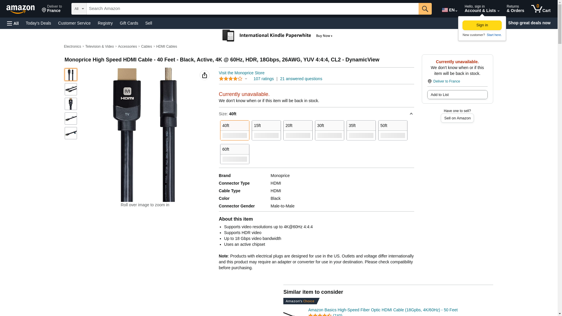 Monoprice High Speed HDMI Cable - 40 Feet - Black, Active, 4K @ 60Hz, HDR, 18Gbps, 26AWG, YUV 4:4:4, CL2 - DynamicView: Maxedbuy.com