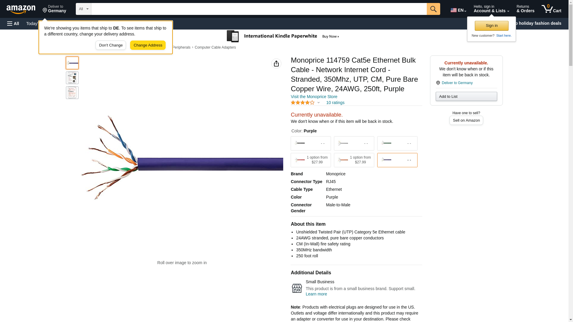 Monoprice Cat5e Ethernet Bulk Cable - Network Internet Cord - Stranded, 350Mhz, UTP, CM, Pure Bare Copper Wire, 24AWG, 250ft, Purple