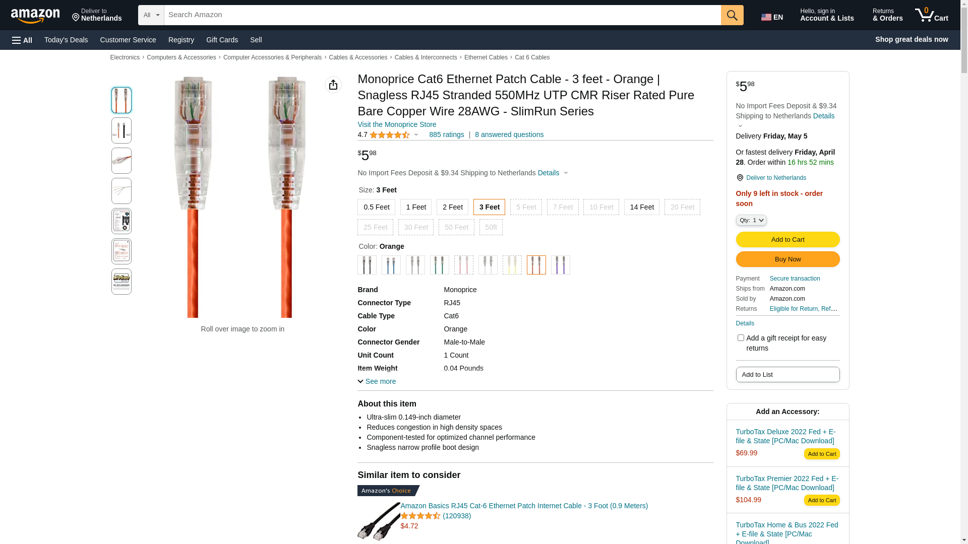 Monoprice Cat6 Ethernet Patch Cable - 3 feet - Orange | Snagless RJ45 Stranded 550MHz UTP CMR Riser Rated Pure Bare Copper Wire 28AWG - SlimRun Series: Maxedbuy.com