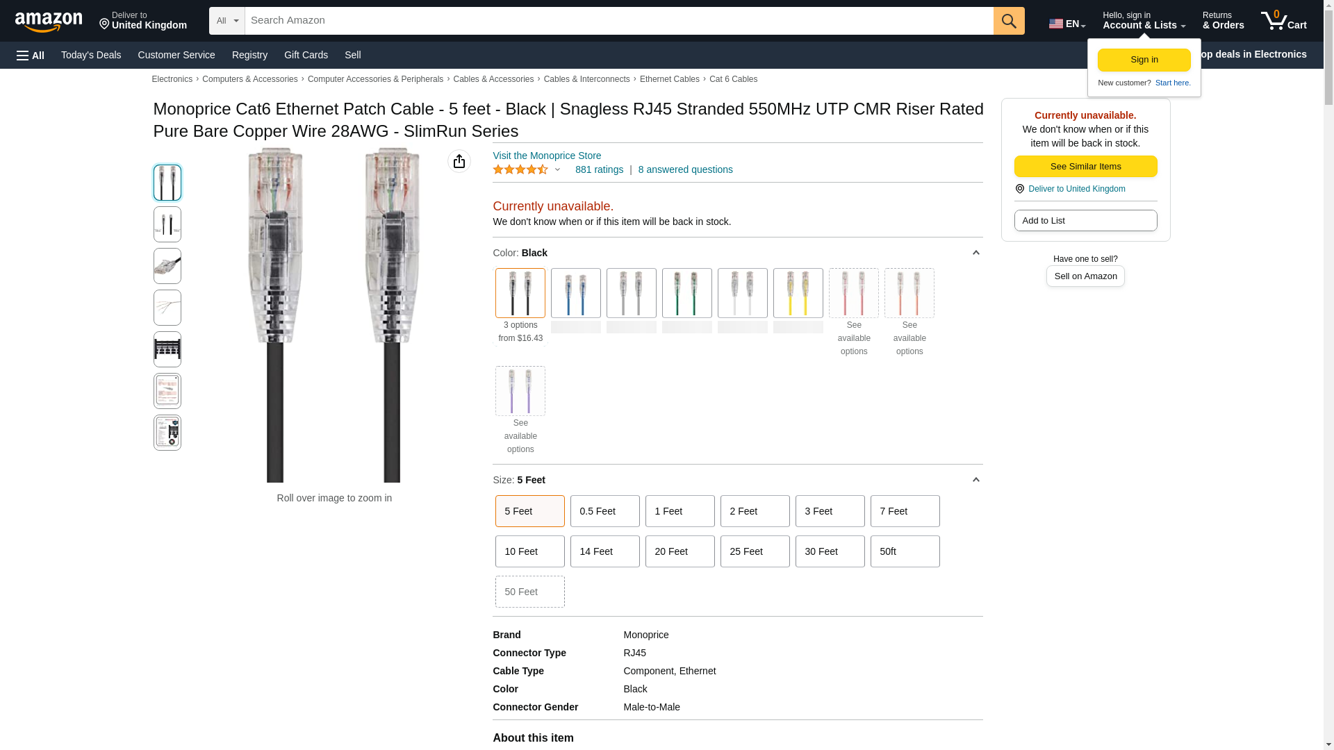 Monoprice Cat6 Ethernet Patch Cable - Snagless, Stranded, 550MHz, UTP,CMR Rated, 28AWG, 5 Feet, Orange - SlimRun Series