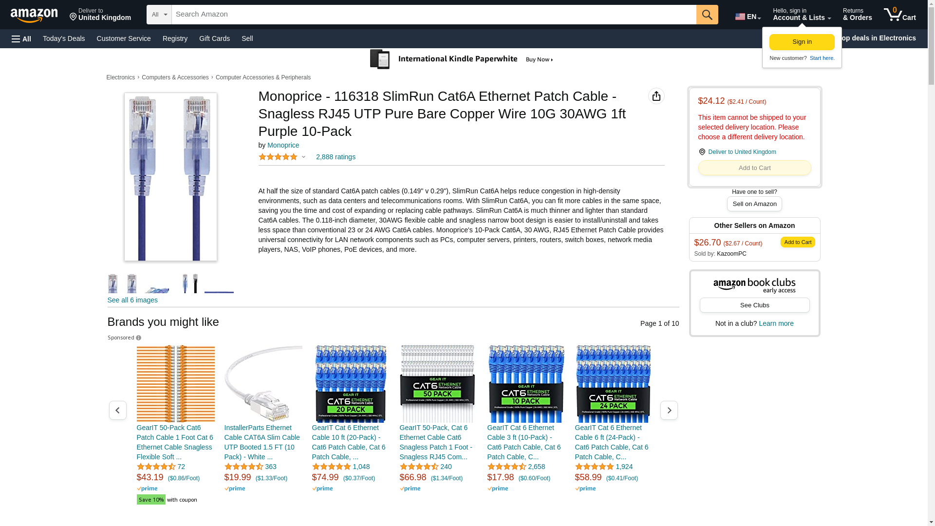 Monoprice - 116318 SlimRun Cat6A Ethernet Patch Cable - Snagless RJ45 UTP Pure Bare Copper Wire 10G 30AWG 1ft Purple 10-Pack