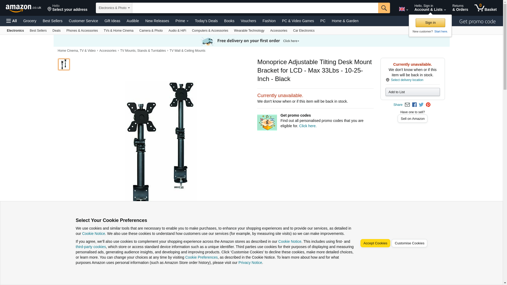Adjustable Tilting Desk Mount Bracket for LCD - Max 33Lbs - 10-25-Inch - Black