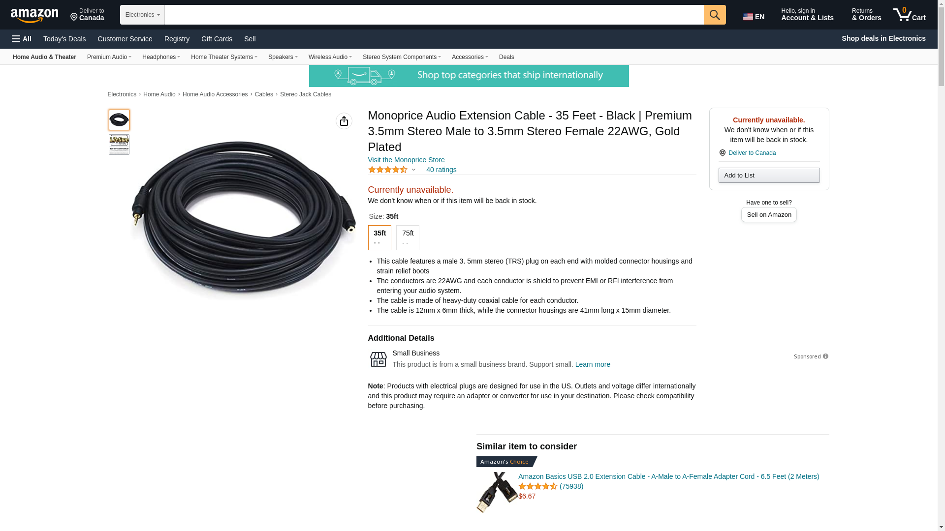 Monoprice 105592 35-Feet Premium Stereo Male to Stereo Female 22AWG Extension Cable - Black