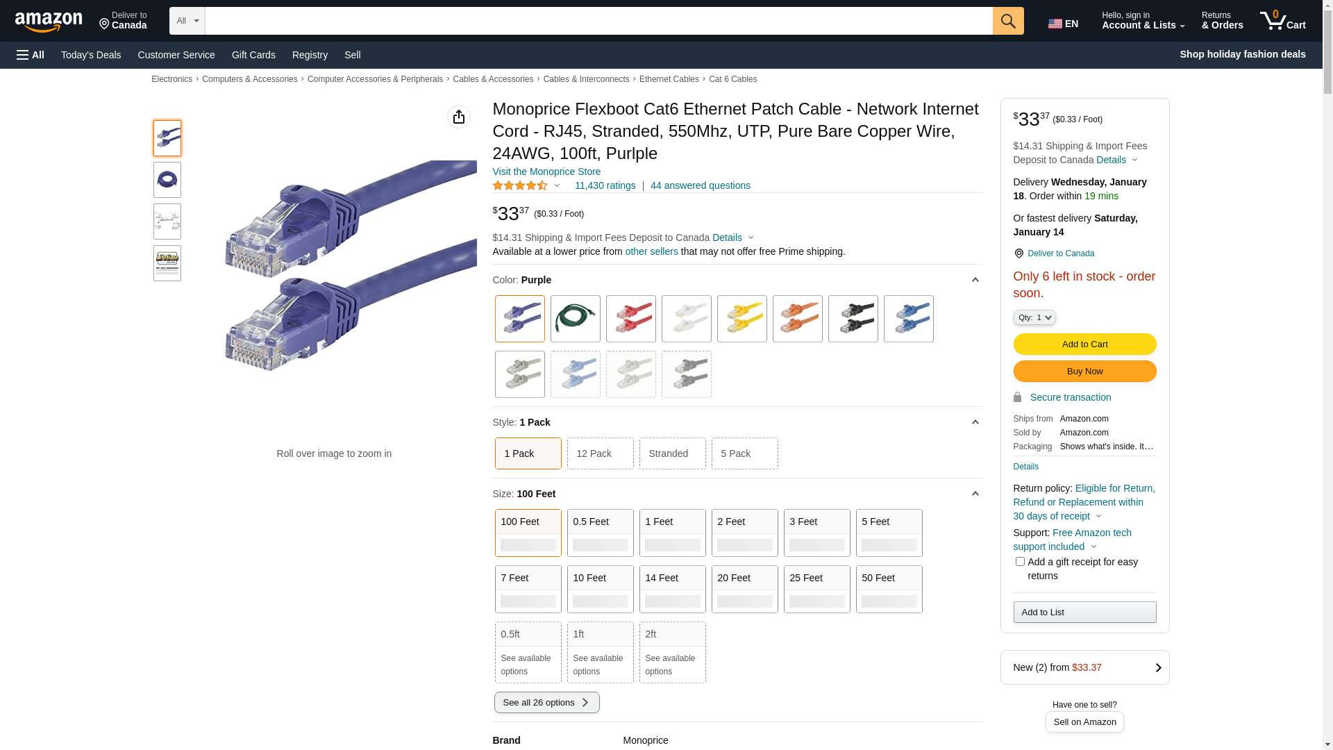 MONOPRICE, INC. 11232 CAT6 UTP NETWORK CABLE_ 100FT PURPLE