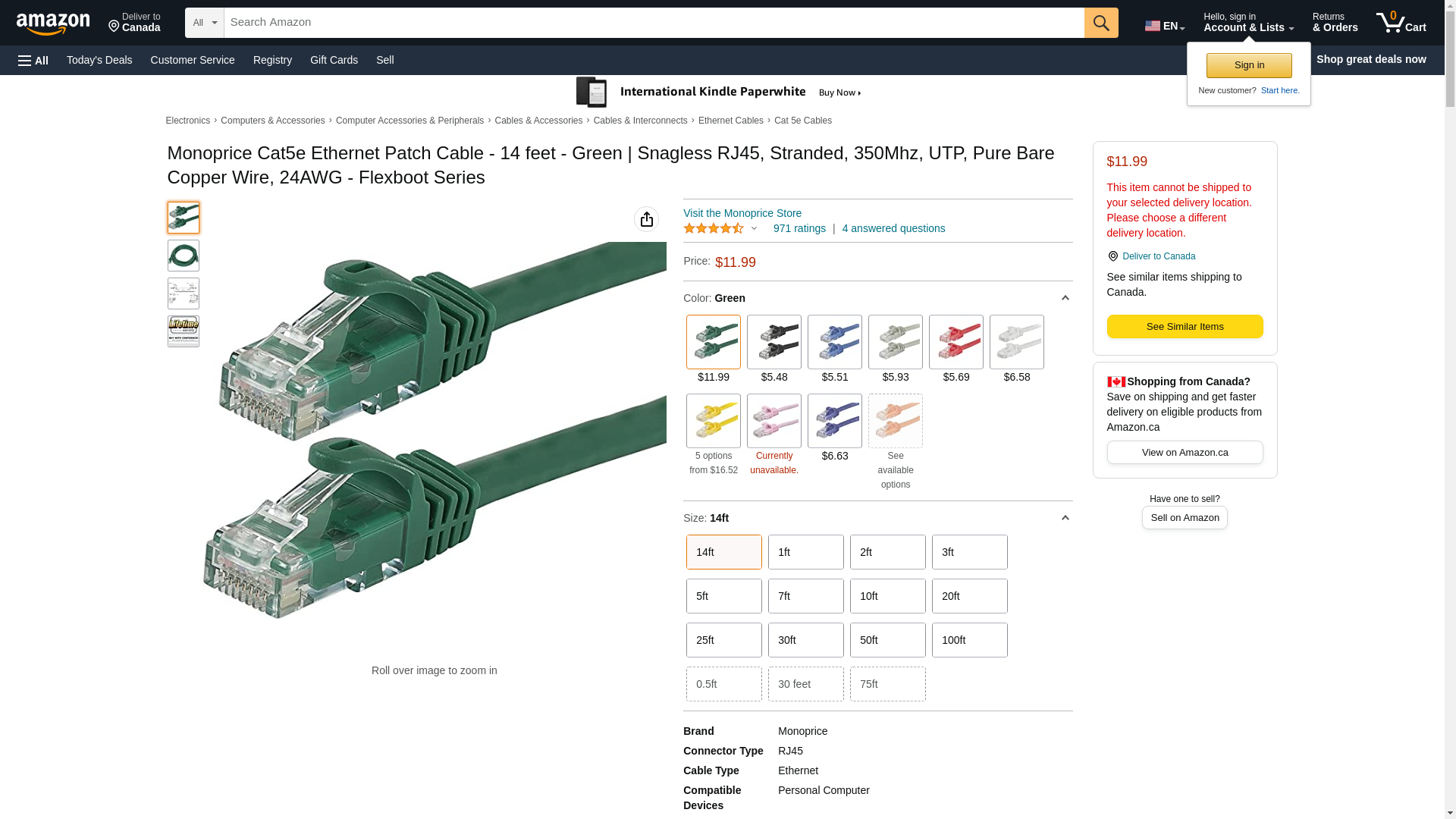 MONOPRICE, INC. 11249 CAT5E 24AWG UTP D CABLE_ 14FT GREEN
