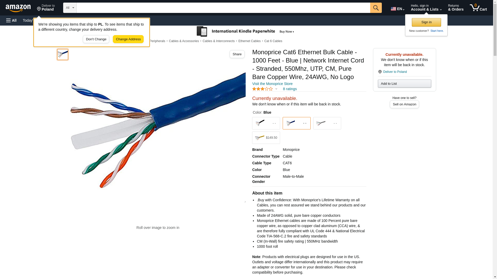 Monoprice 1000FT Cat6 Bulk Bare Cable Copper Ethernet Cable, UTP, Stranded, In-Wall Rated (CM), 550MHz, 24AWG - Blue - GENERIC