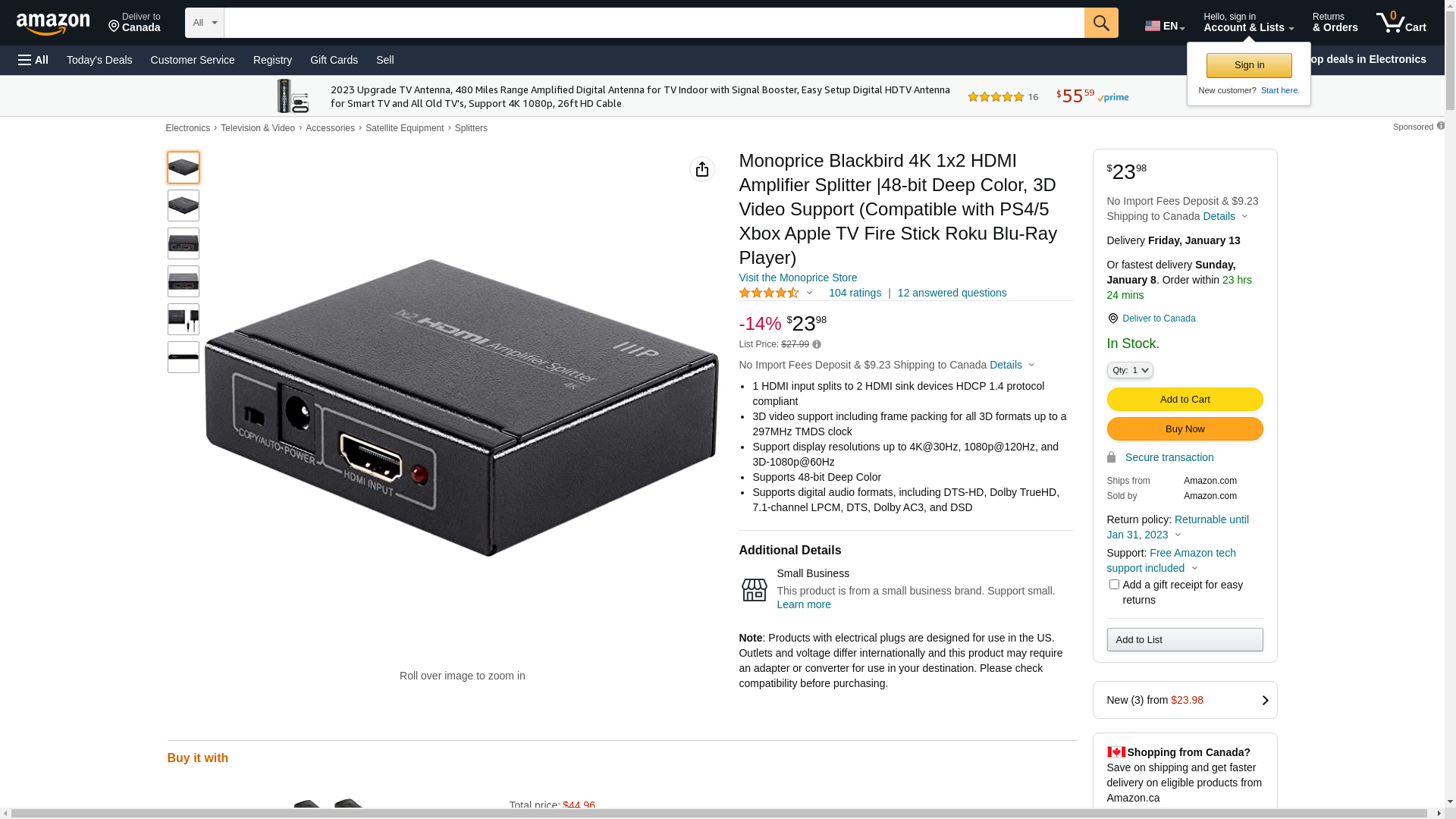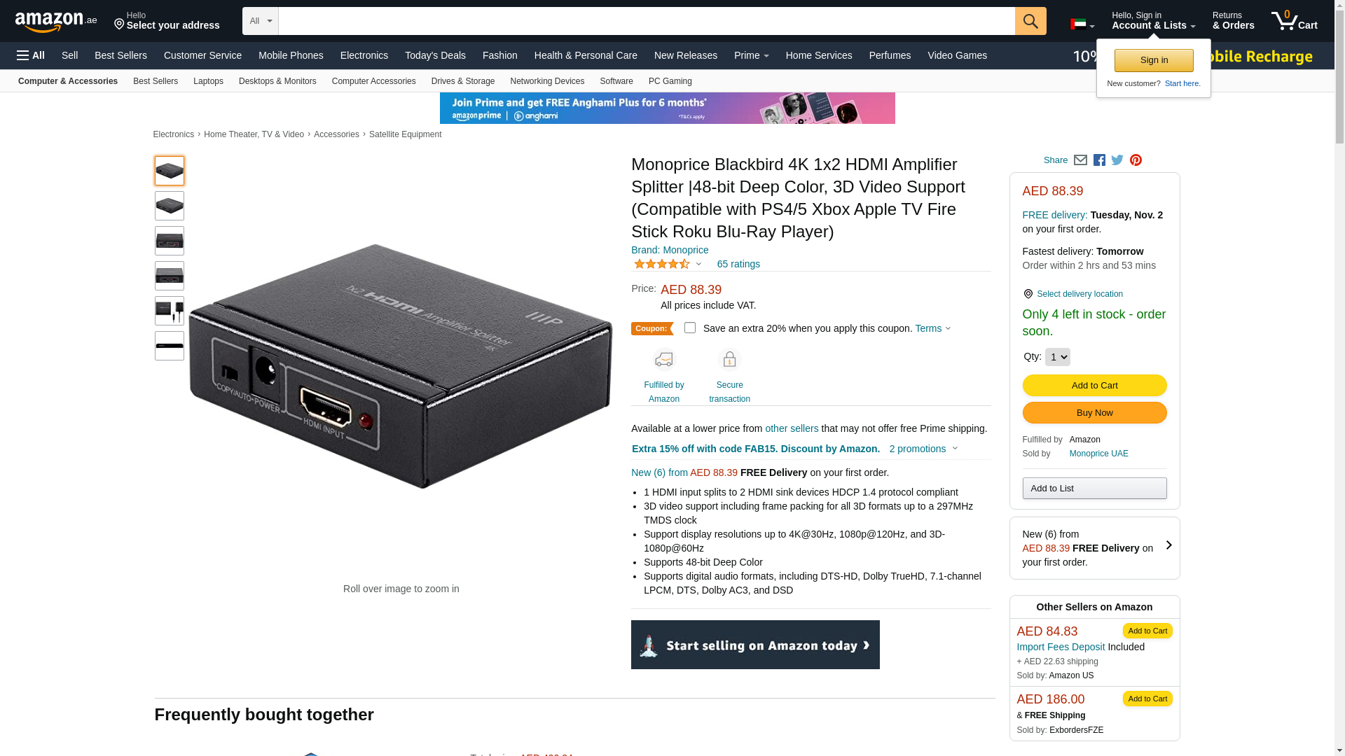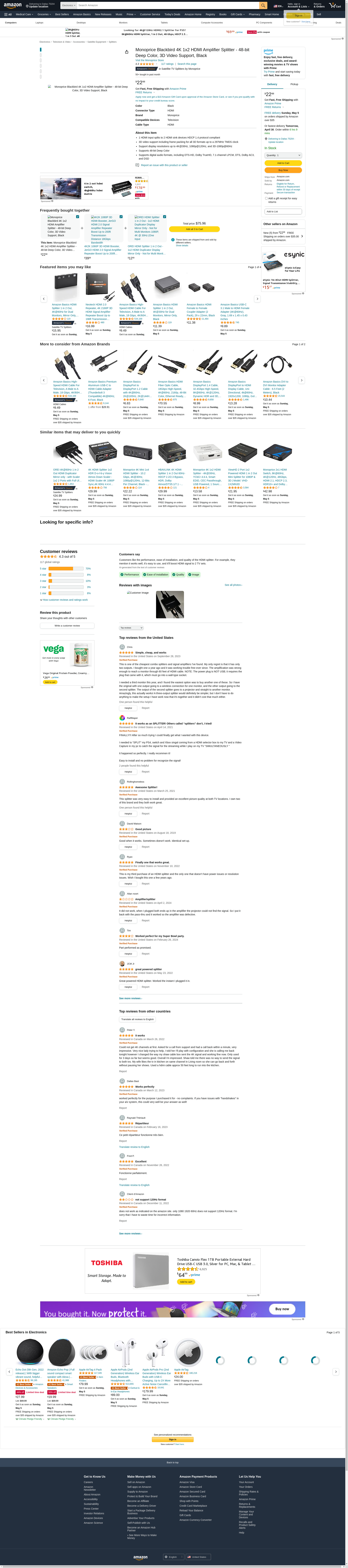 Monoprice Blackbird 4K 1x2 HDMI Amplifier Splitter