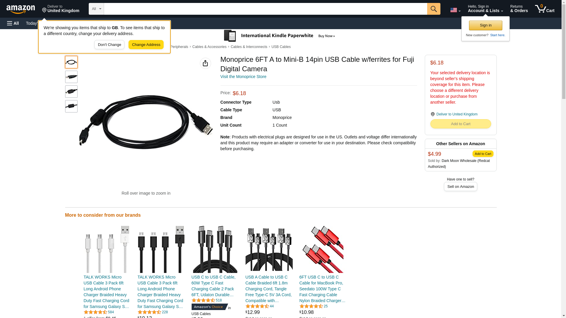 Monoprice 6FT A to Mini-B 14pin USB Cable w/ferrites for Fuji Digital Camera