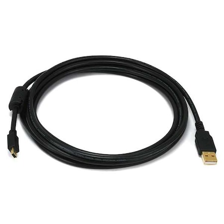 USB Cable, USB Specification 2.0, 6 ft, Color Black, Connector Type A Male to 5 Pin B Mini Male, Ferrite Core, Gold Plated, For Use With Cameras, MP3, PDA, UL/CSA Standards