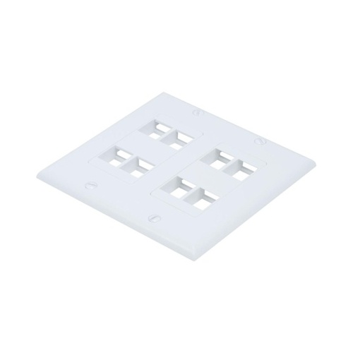 Wall Plate, Product Type Wall Plate, Wallplate Type Telephone, Color White, NEMA Enclosure Rating Not Rated, Compatible Connector Type RJ45, Number of Gangs 2, Outlet Orientation Vertical, Number of Ports 8, Compatible Cable Performance Category Not Applicable, Material Plastic, Overall Depth 1 in, Overall Width 4 5/8 in