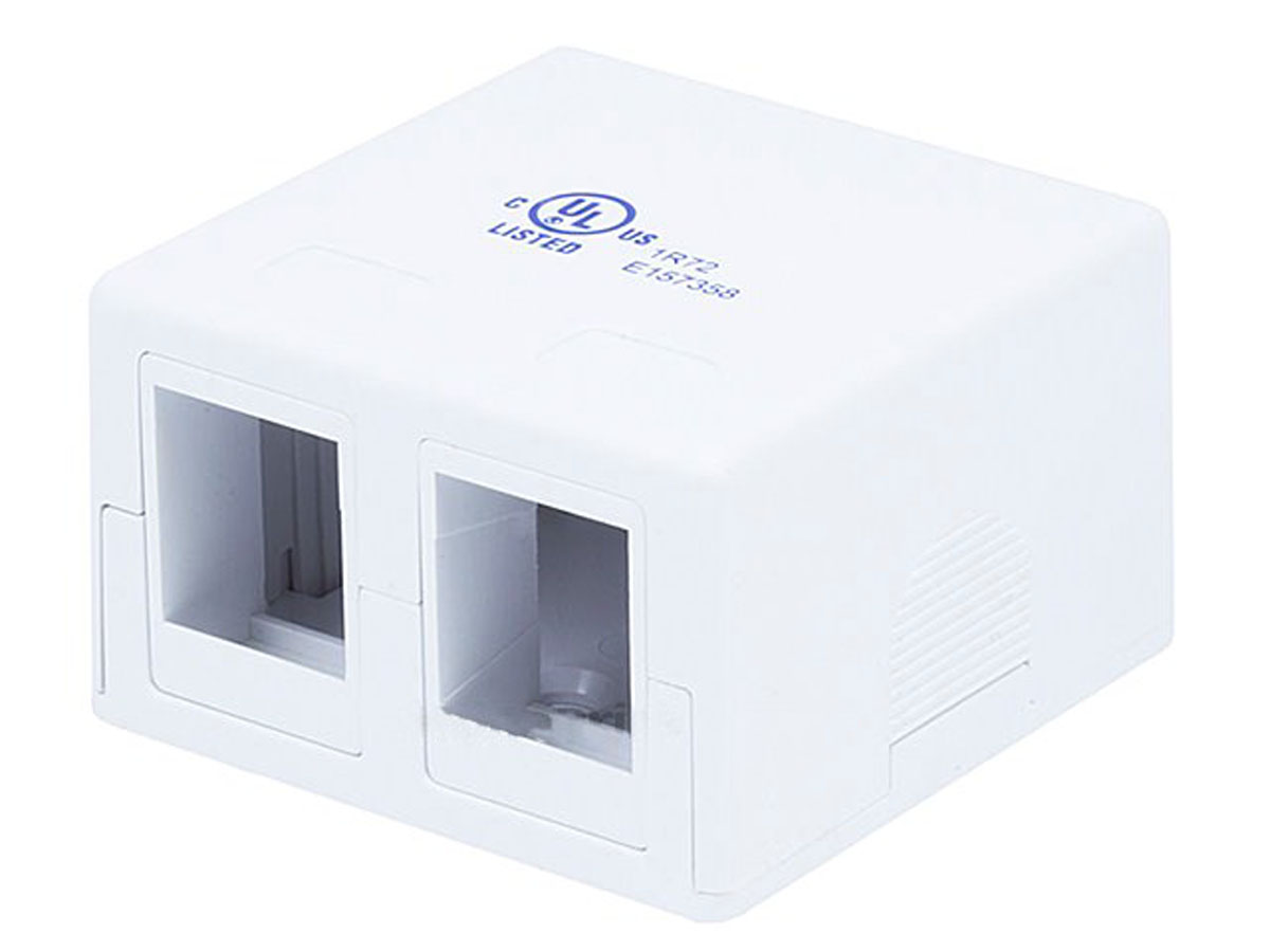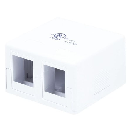 Surface Mount Box, Compatible Module Type Keystone, Number of Ports 2, Color White, For Use With Keystone Connector, Features Two Back Slits for Flush Mounting, Wall Mountable, Includes (2) Zip Ties, Double Sided Adhesive Mounting Pad, Standards UL Listed