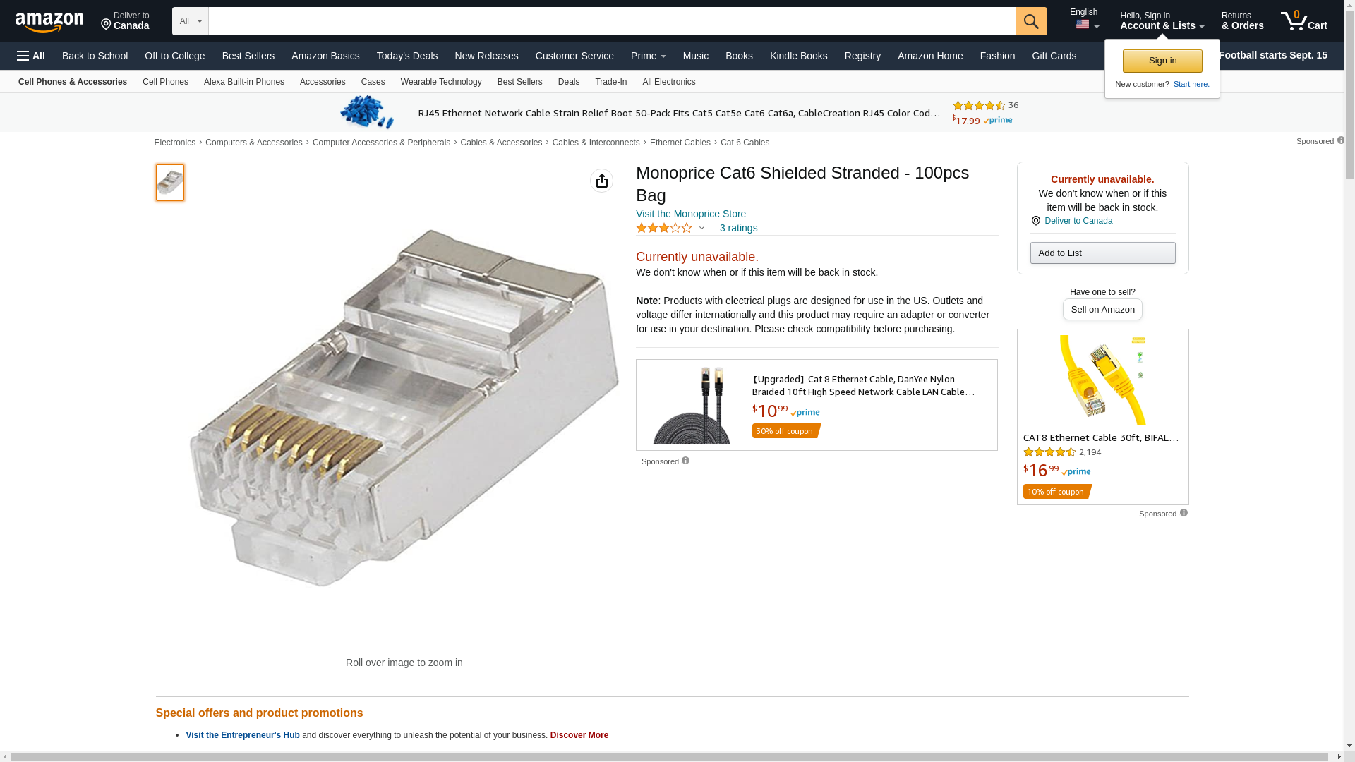 Monoprice Cat6 Shielded Stranded - 100pcs Bag