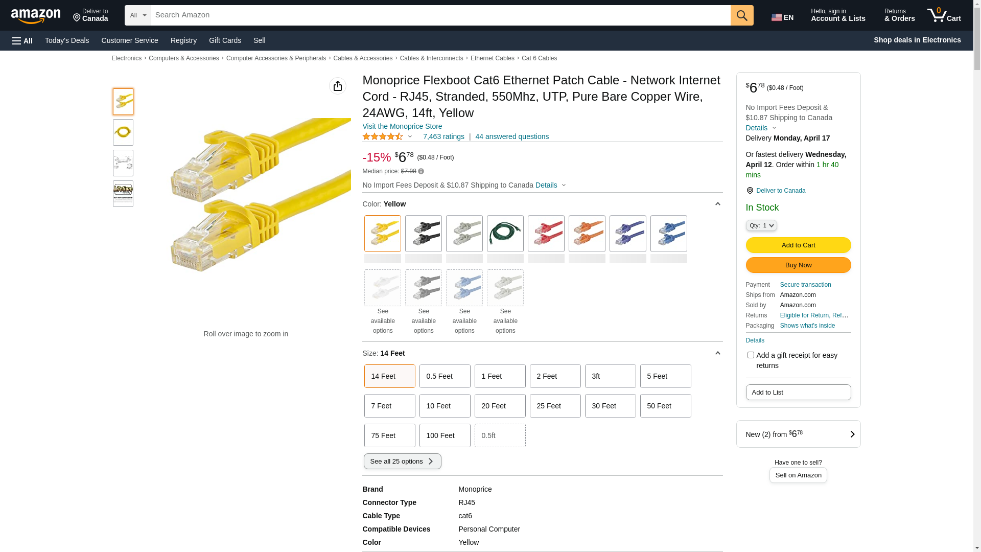 Monoprice Cat6 Ethernet Patch Cable - Flexboot, RJ45, Stranded, 550Mhz, UTP, Pure Bare Copper Wire, 24AWG, 14 Feet, Yellow