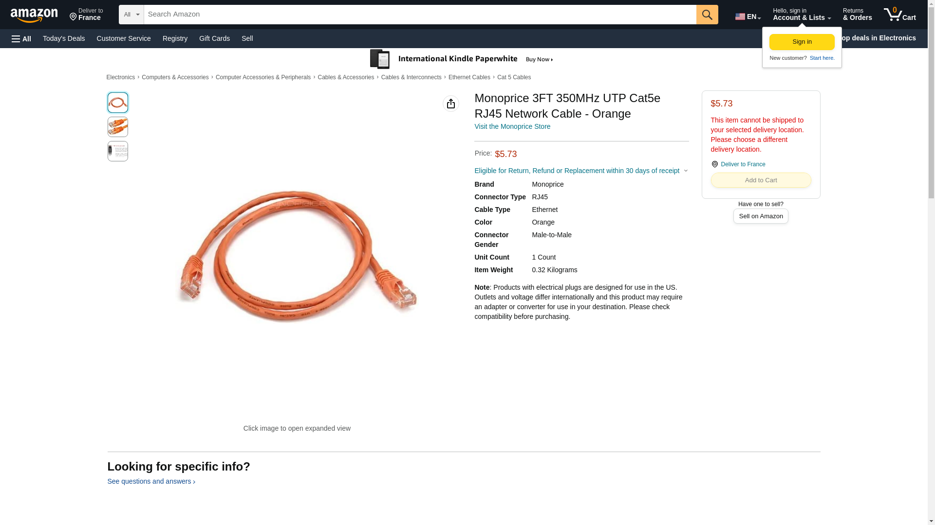 Monoprice 3FT 350MHz UTP Cat5e RJ45 Network Cable - Orange