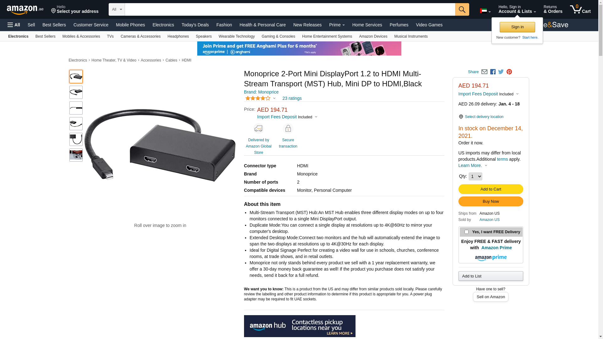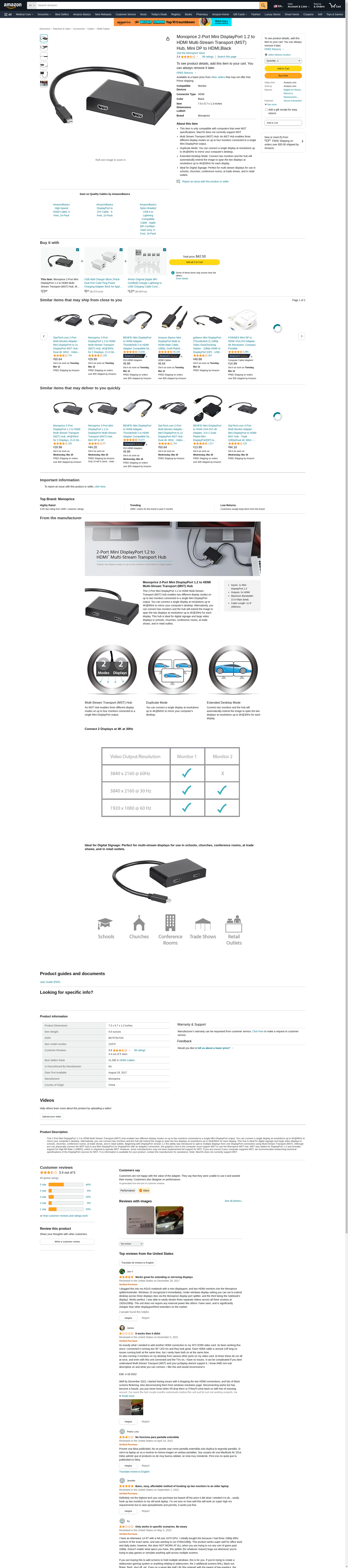 Monoprice 2-Port Mini DisplayPort 1.2 to HDMI Multi-Stream Transport (MST) Hub, Mini DP to HDMI,Black