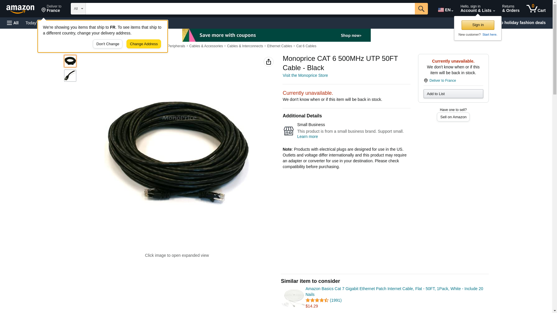 Monoprice CAT 6 500MHz UTP 50FT Cable - Black
