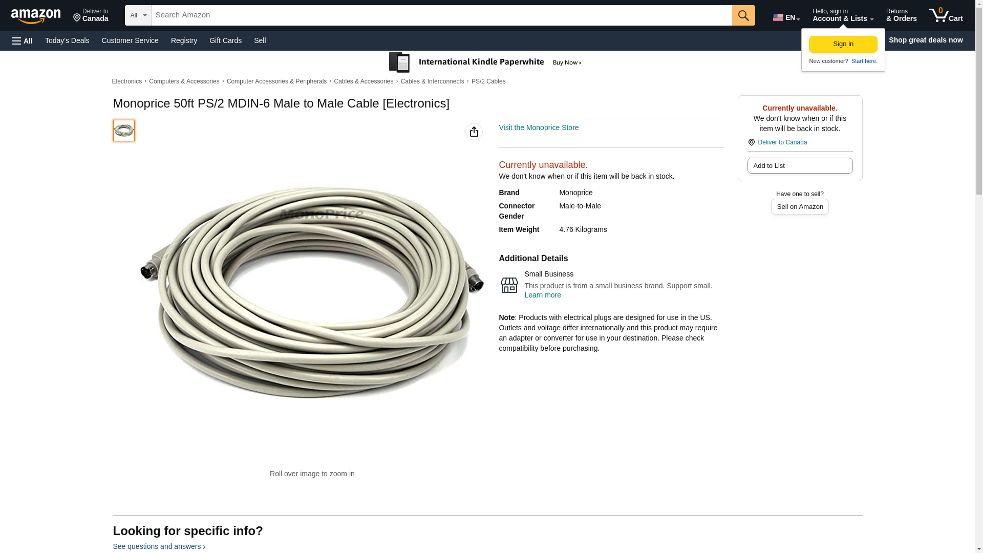 Monoprice 50ft PS/2 MDIN-6 Male to Male Cable [Electronics]