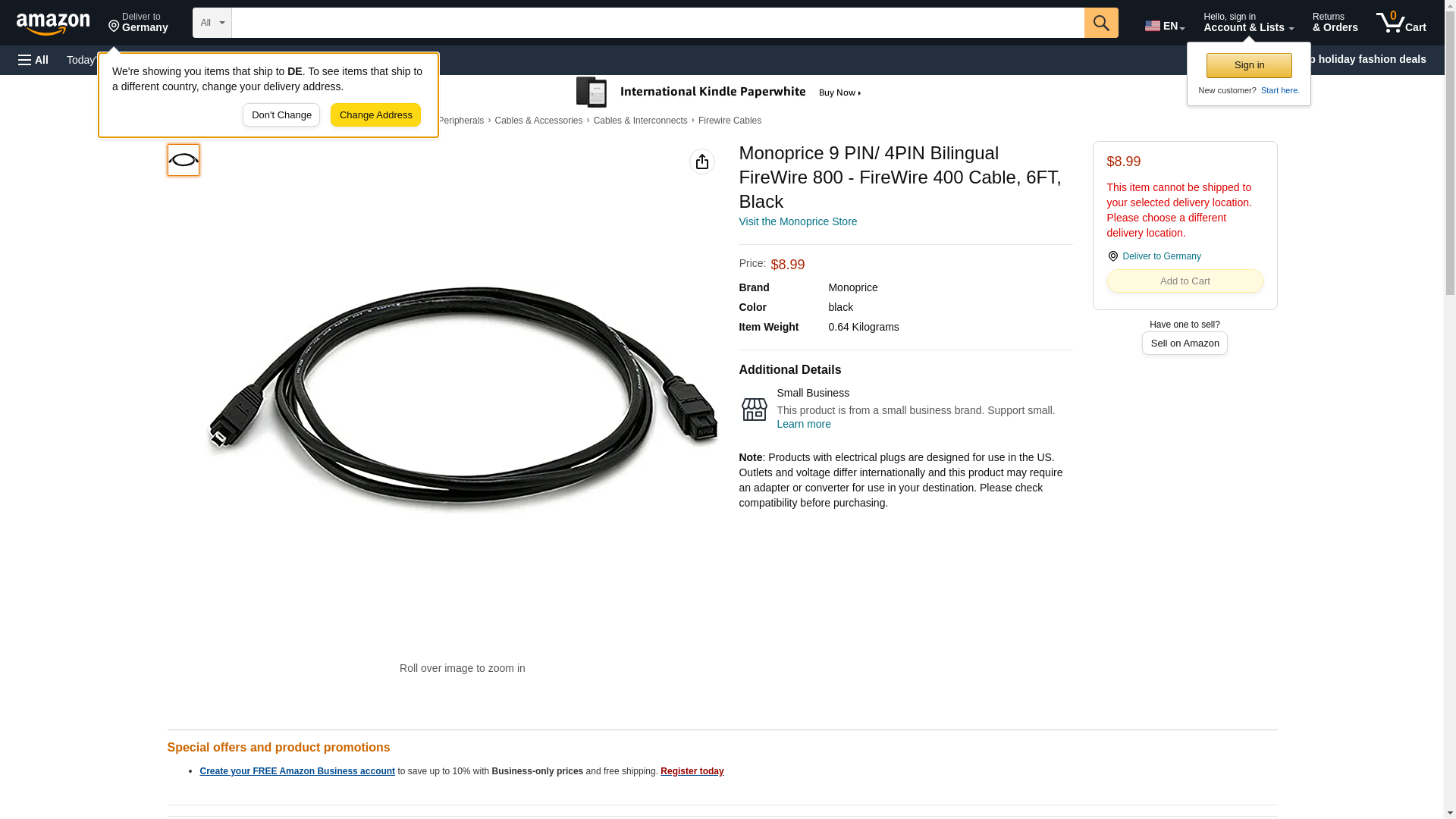 | Feature | 9 PIN/ 4PIN BILINGUAL FireWire 800 - FireWire 400 Cable, 6FT, Black |