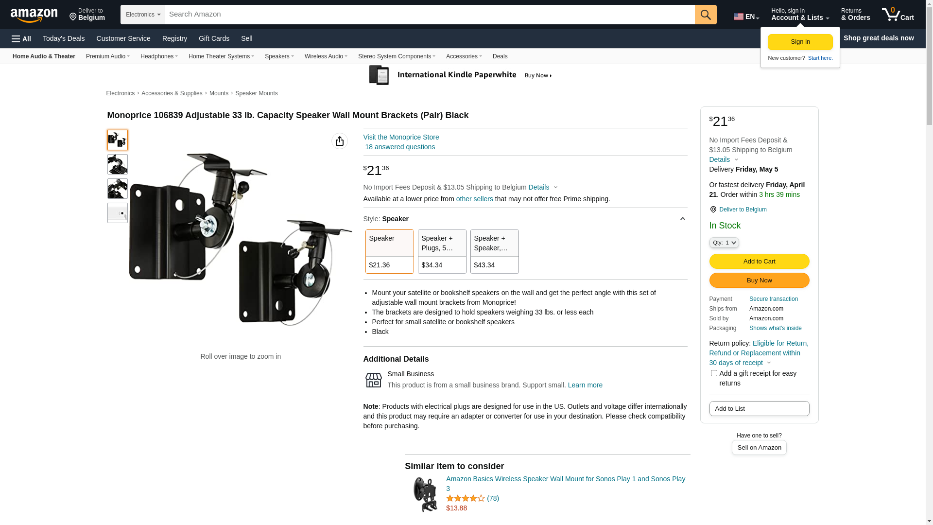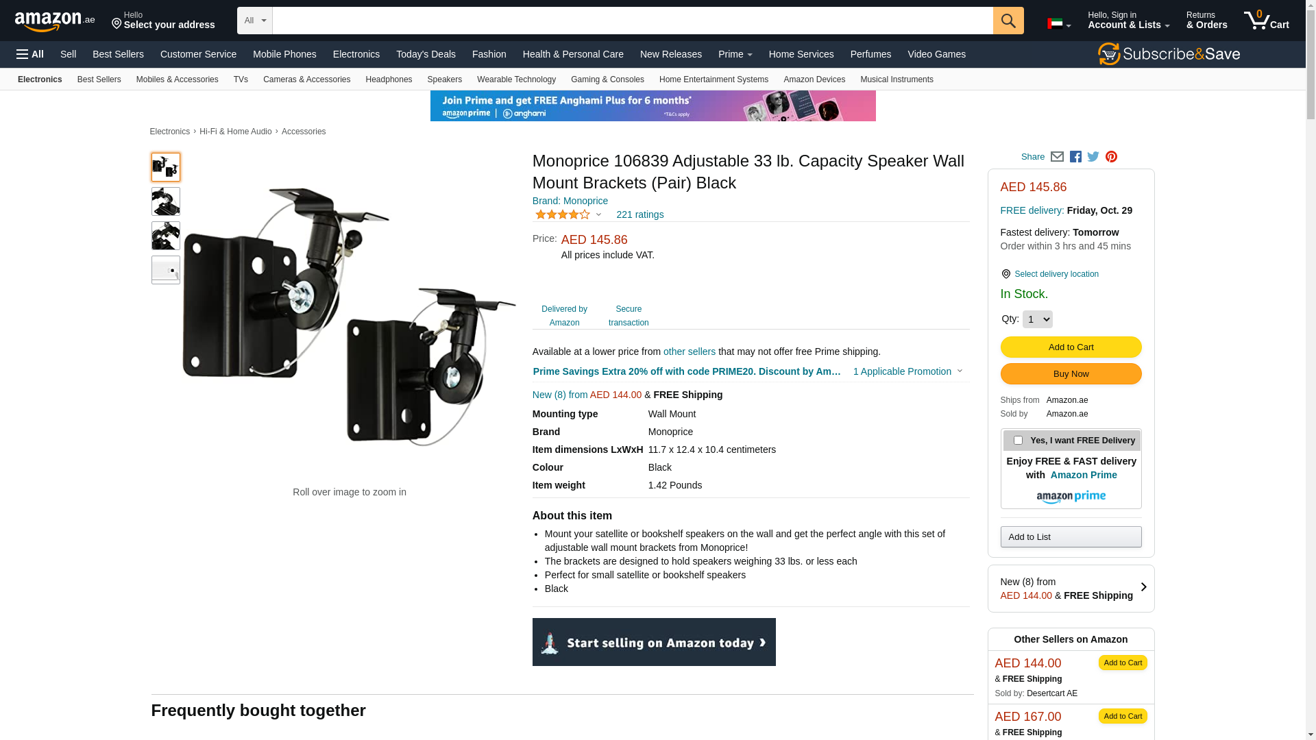| Feature | Mount your satellite or bookshelf speakers on the wall and get the perfect angle with this set of adjustable wall mount brackets from Monoprice! |