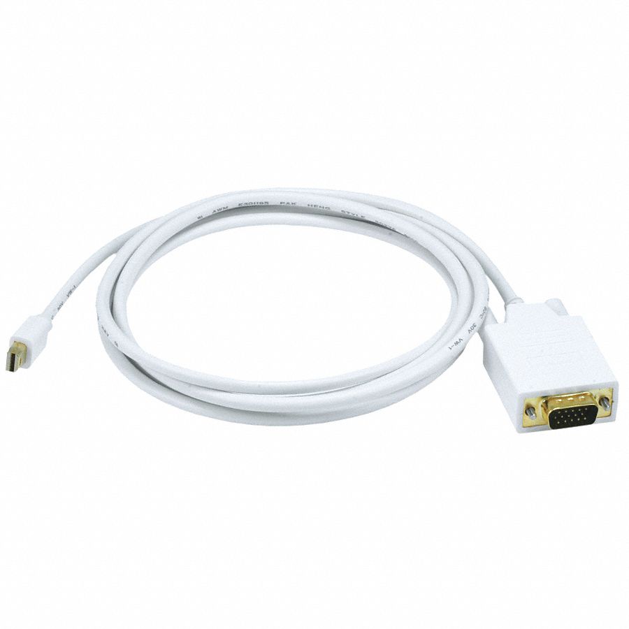 MONOPRICE Cable Adapter: Mini DisplayPort/VGA Cable, 6 ft Cable Lg, White, 2 Connections - 14X016|6003 - Grainger