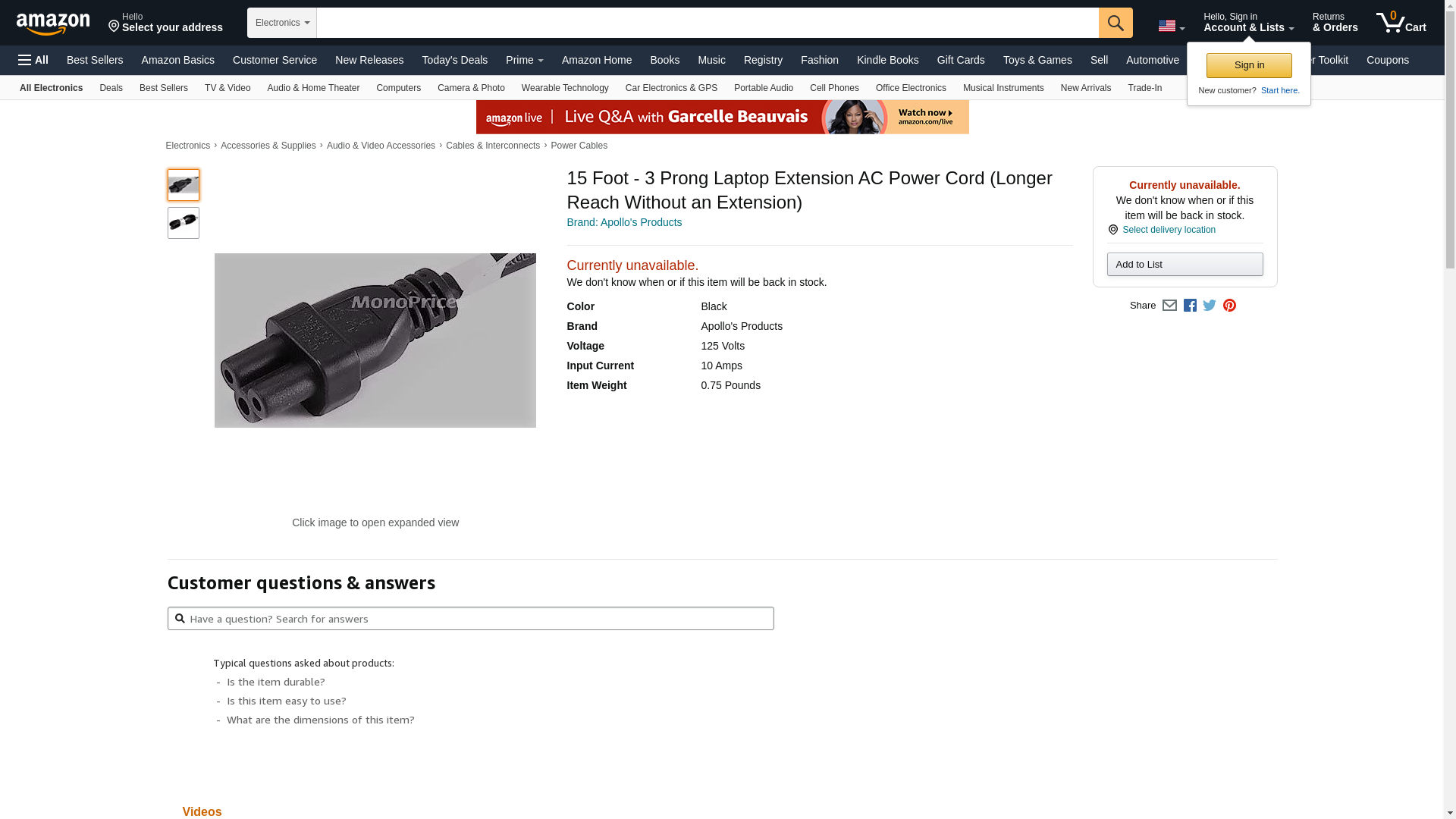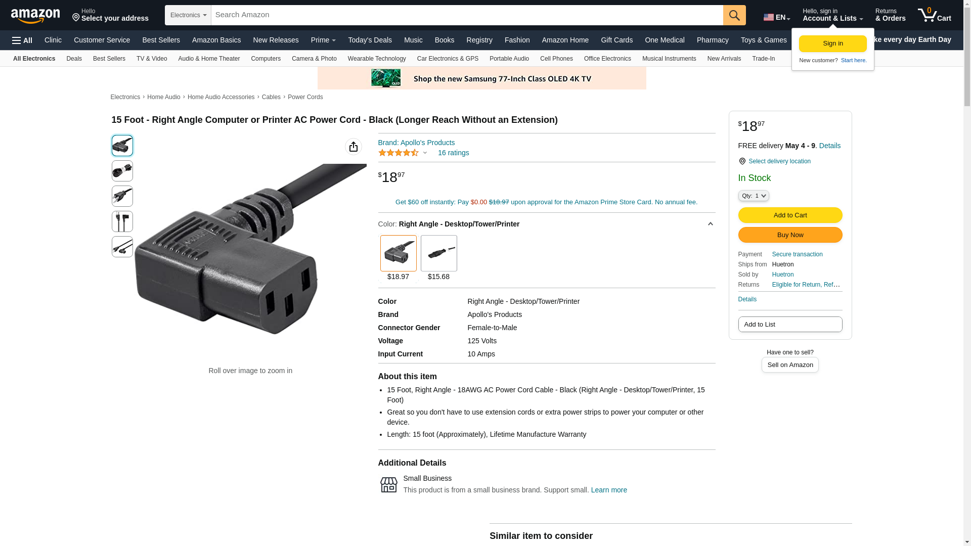 | Feature | 15 Foot, Right Angle - 18AWG AC Power Cord Cable - Black (Right Angle - Desktop/Tower/Printer, 15 Foot) |