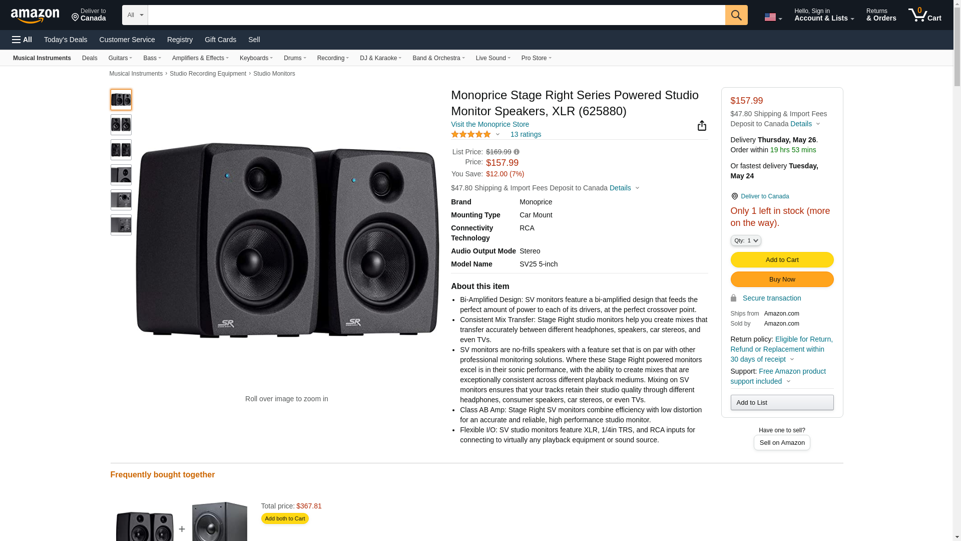 - Class AB Amp: Stage Right SV monitors combine efficiency with low distortion for an accurate and reliable, high performance studio monitor.