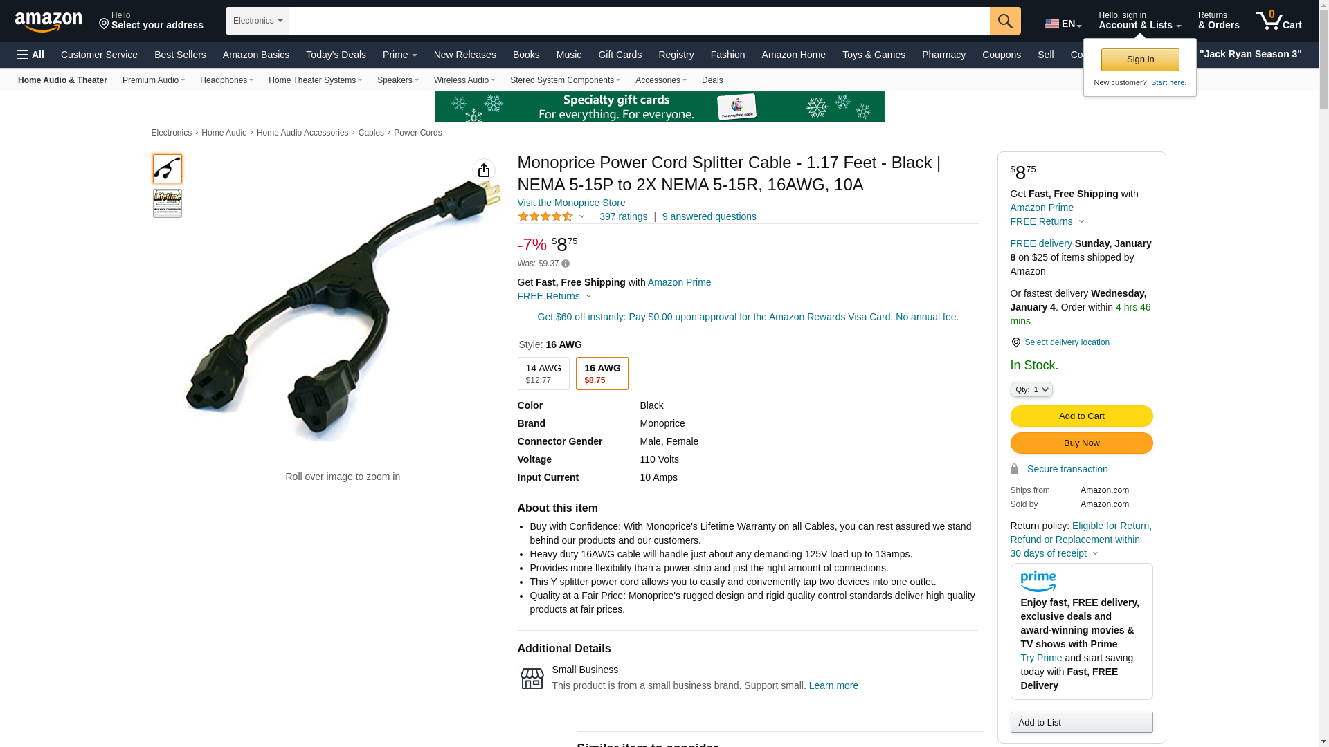 | Feature | This "Y" splitter power cord allows you to easily and conveniently tap two devices into one outlet |