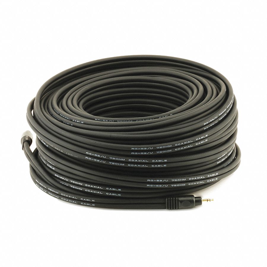 MONOPRICE Audio Cable: 100 ft Lg, Black, Heavy-Duty/Stereo Audio Cable, For Portable Audio Devices - 14X106|5585 - Grainger