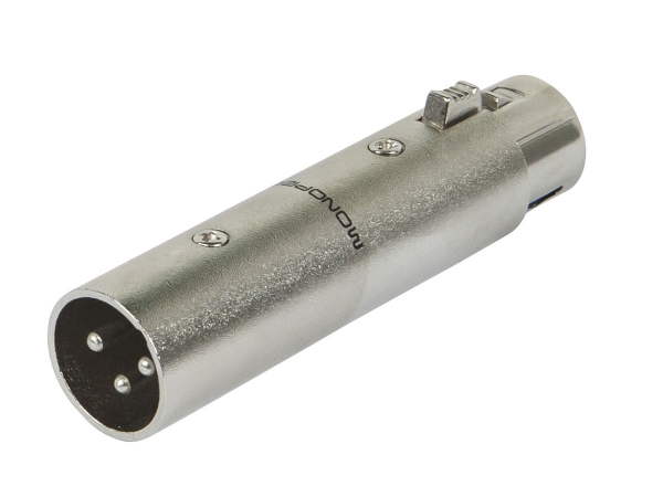 Monoprice 3-Pin Male to 5-Pin Female DMX Converter - Silver, Anodized Aluminum Adapter with Lock Release Button
