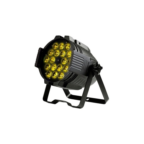 - Uses eighteen 18-watt LEDs; 6-in-1 LEDs produce red, green, blue, white, amber, and ultraviolet light (rgbaw-uv)
