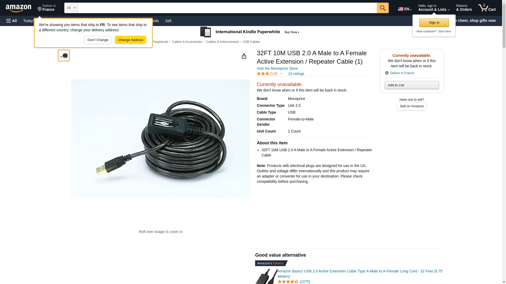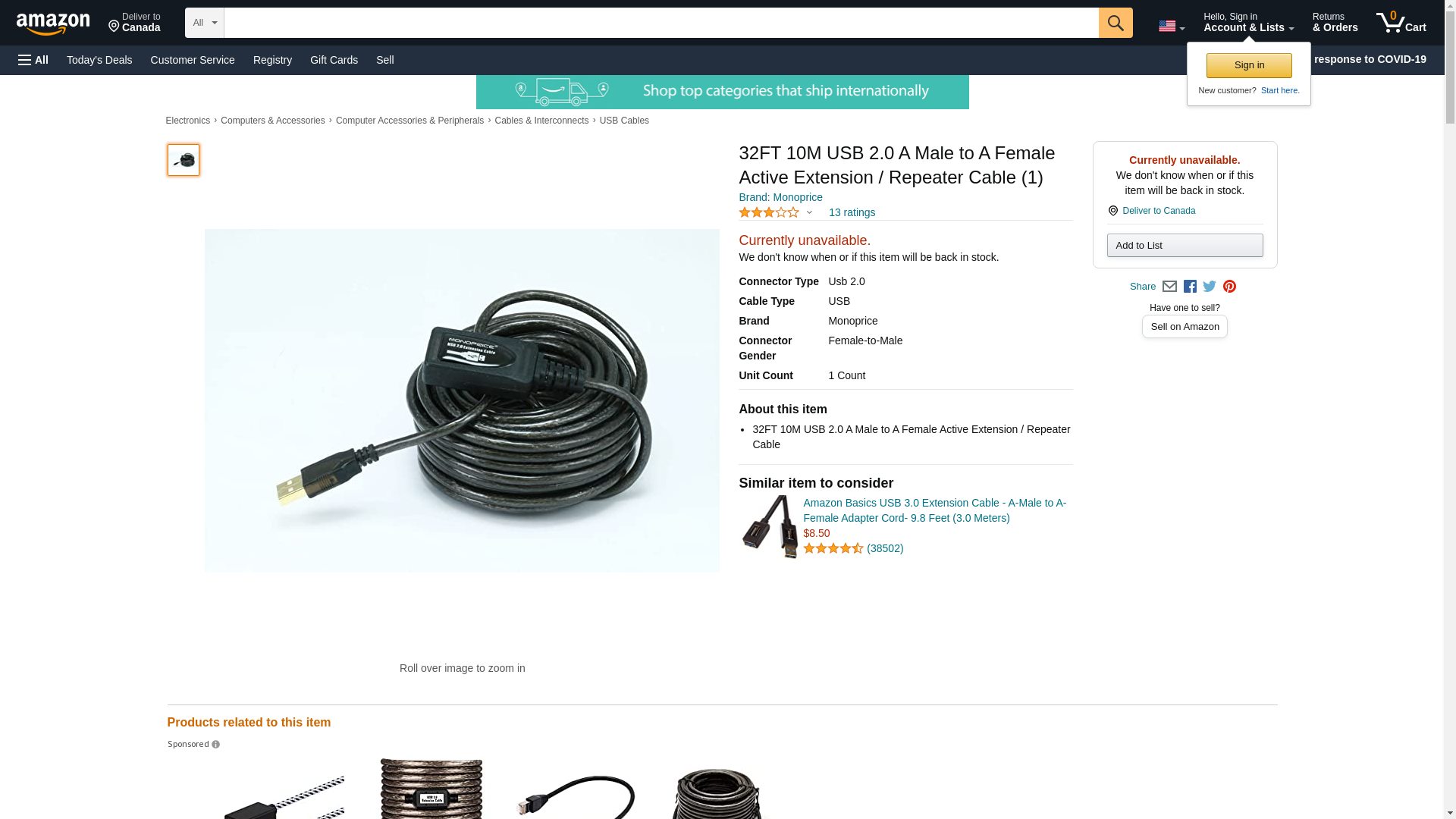 | Feature | 32FT 10M USB 2.0 A Male to A Female Active Extension / Repeater Cable |