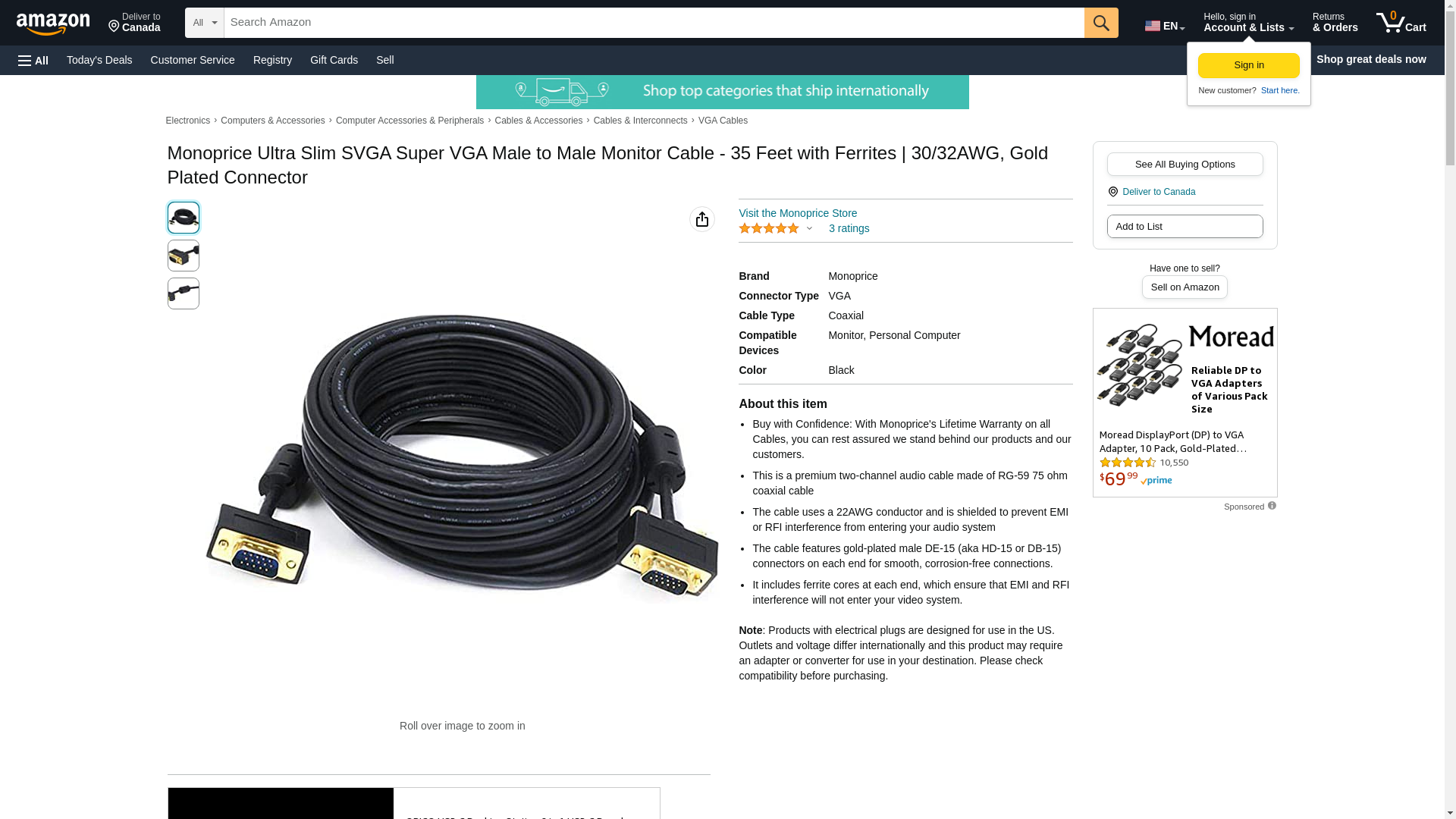 Monoprice 106364 35-Feet Ultra Slim Super VGA Male to Male Monitor Cable with Ferrites