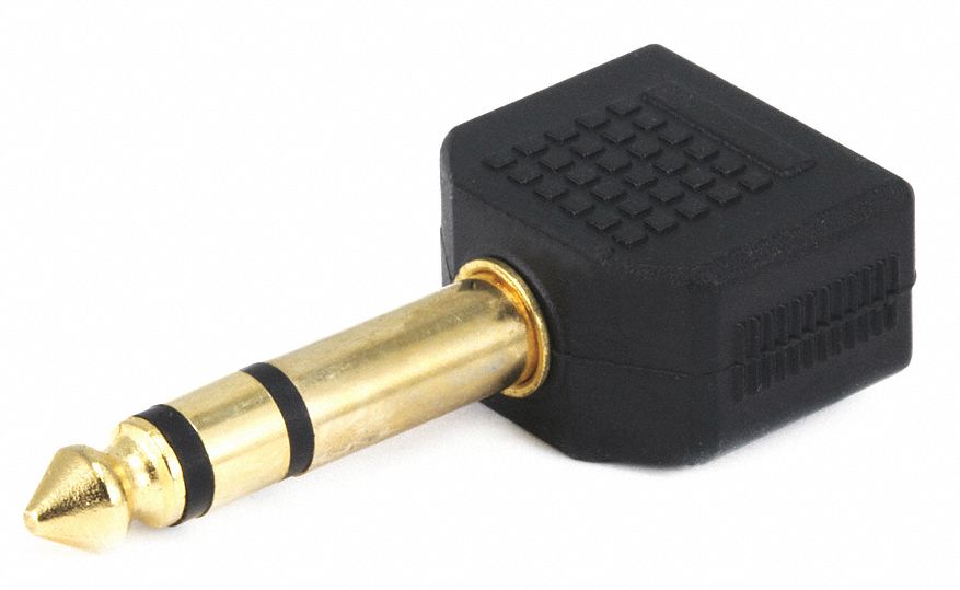 MONOPRICE Audio Splitter: 1/4 in Audio/3.5 mm Audio, Black, 3 Ports, 1/4 in Stereo Male - 14C326|7216 - Grainger