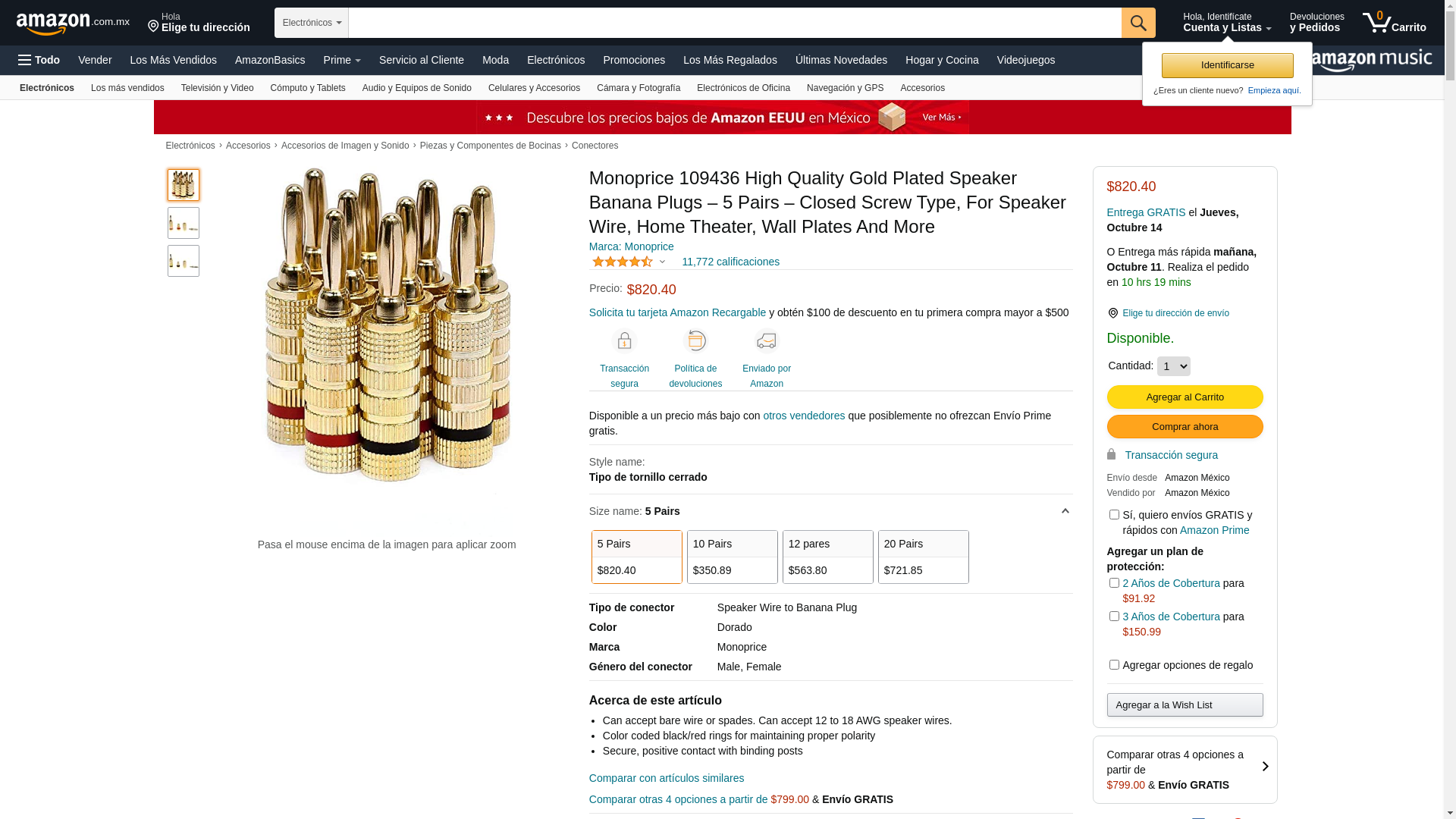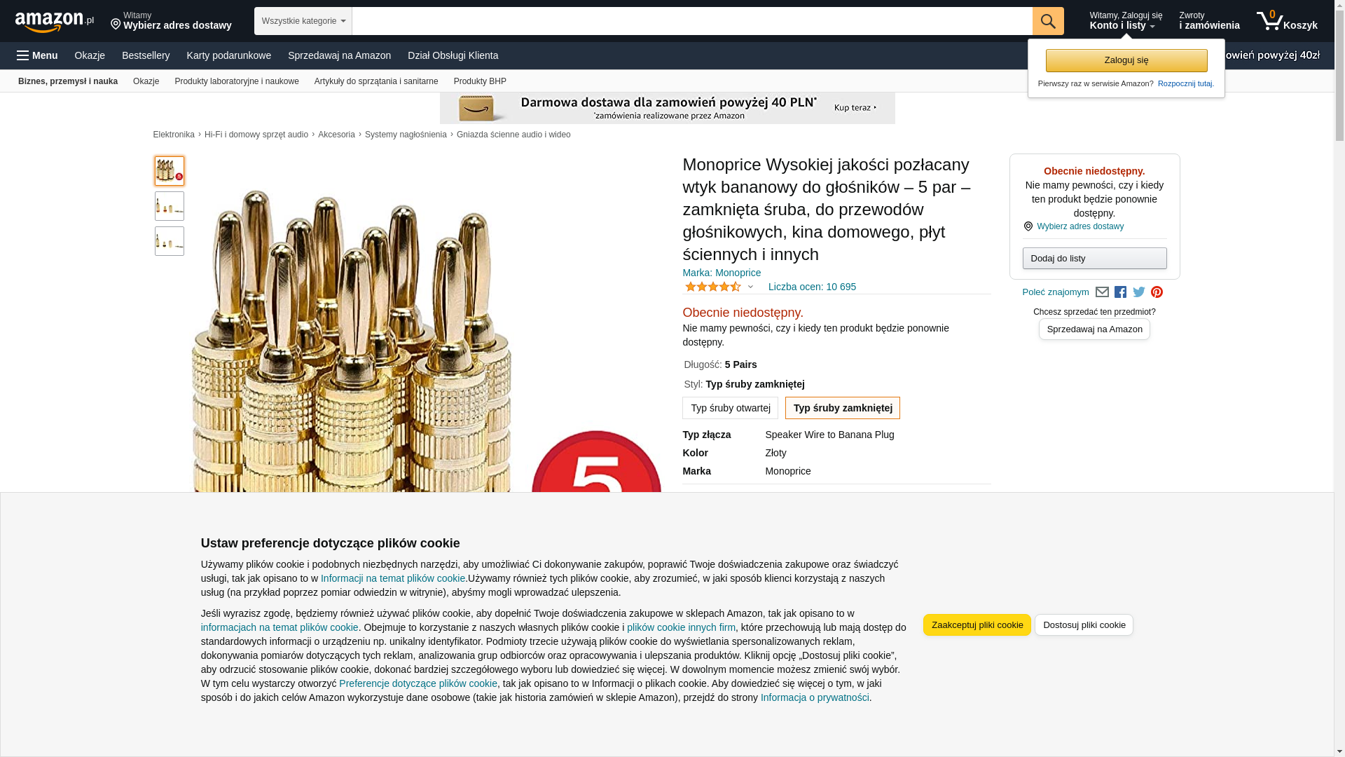 Monoprice Gold Plated Speaker Banana Plugs – 5 Pairs – Closed Screw Type, For Speaker Wire, Home Theater, Wall Plates And More