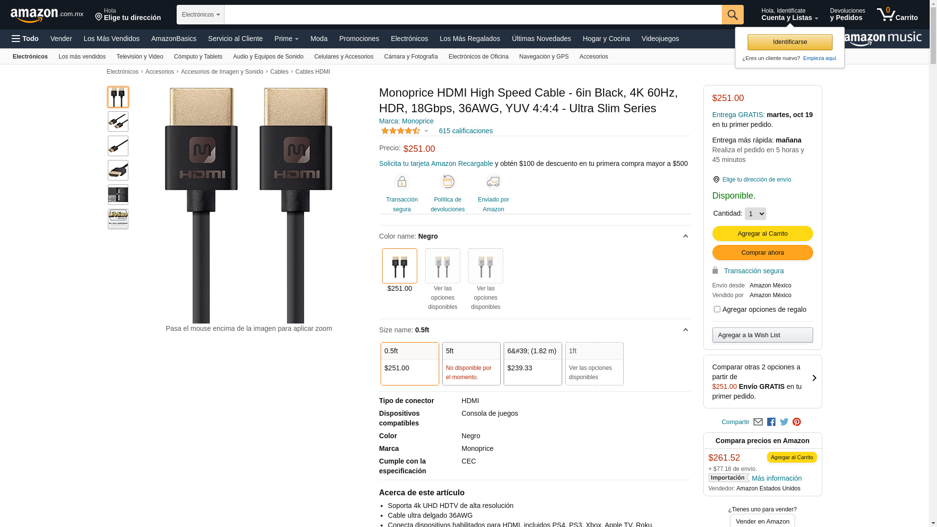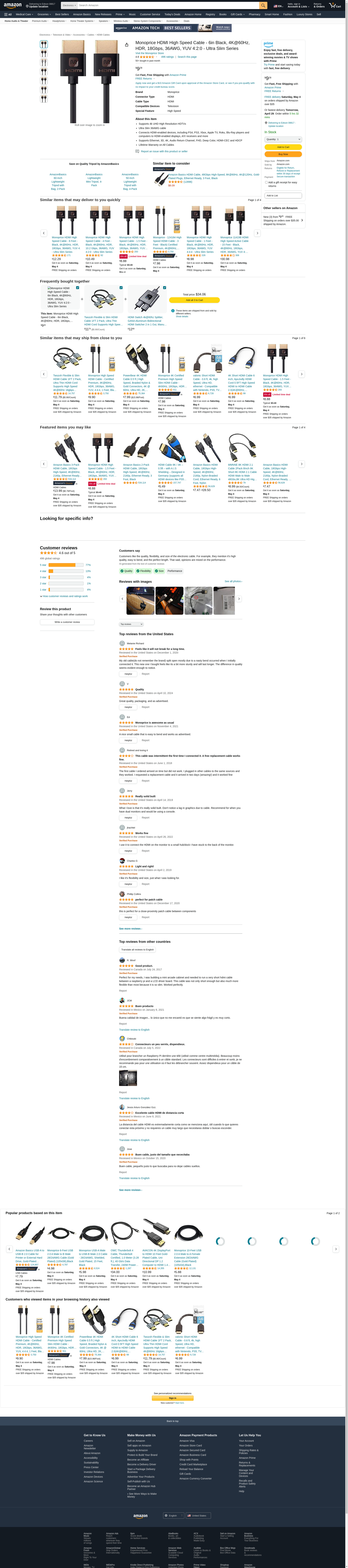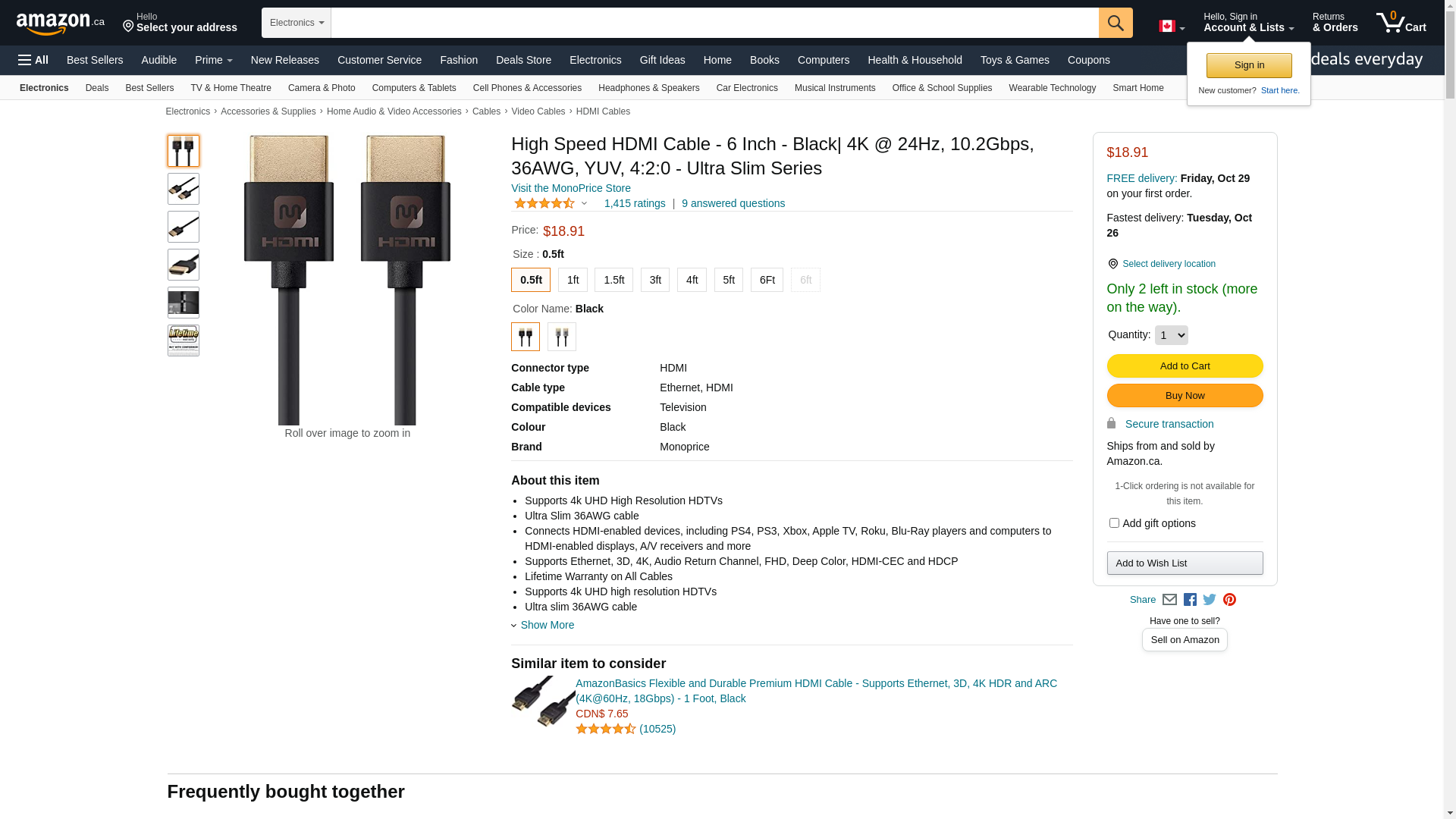 Monoprice HDMI High Speed Cable - 6in Black, 4K@60Hz, HDR, 18Gbps, 36AWG, YUV 4:2:0 - Ultra Slim Series