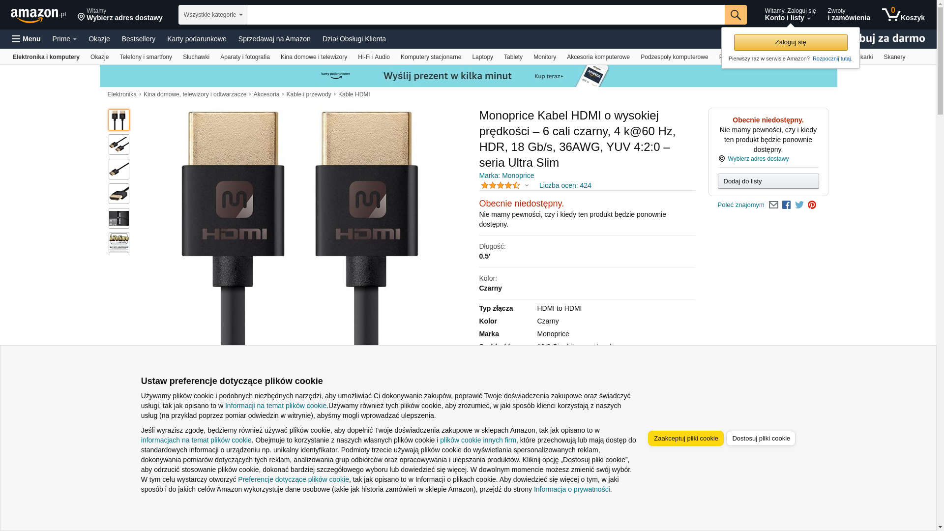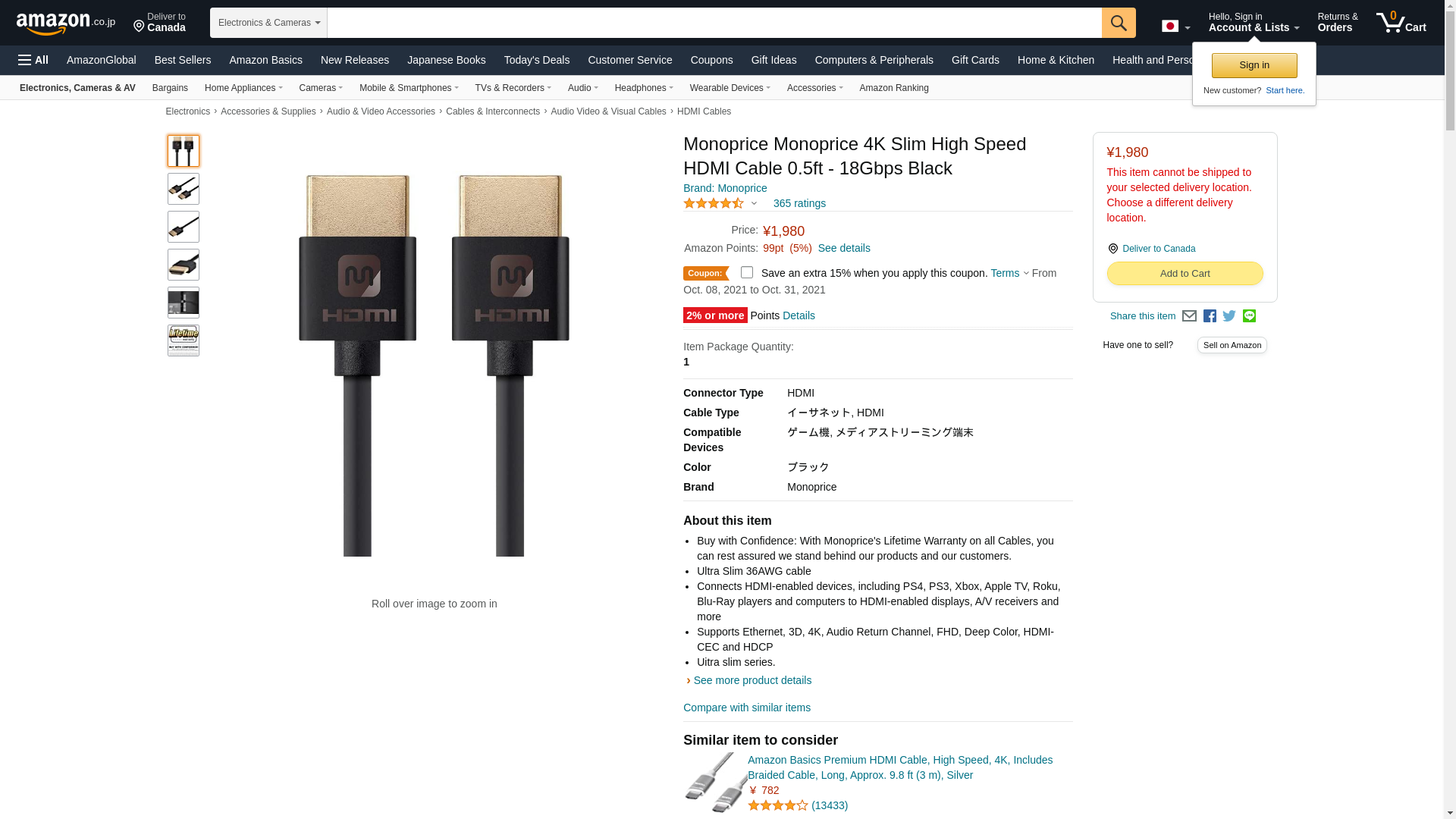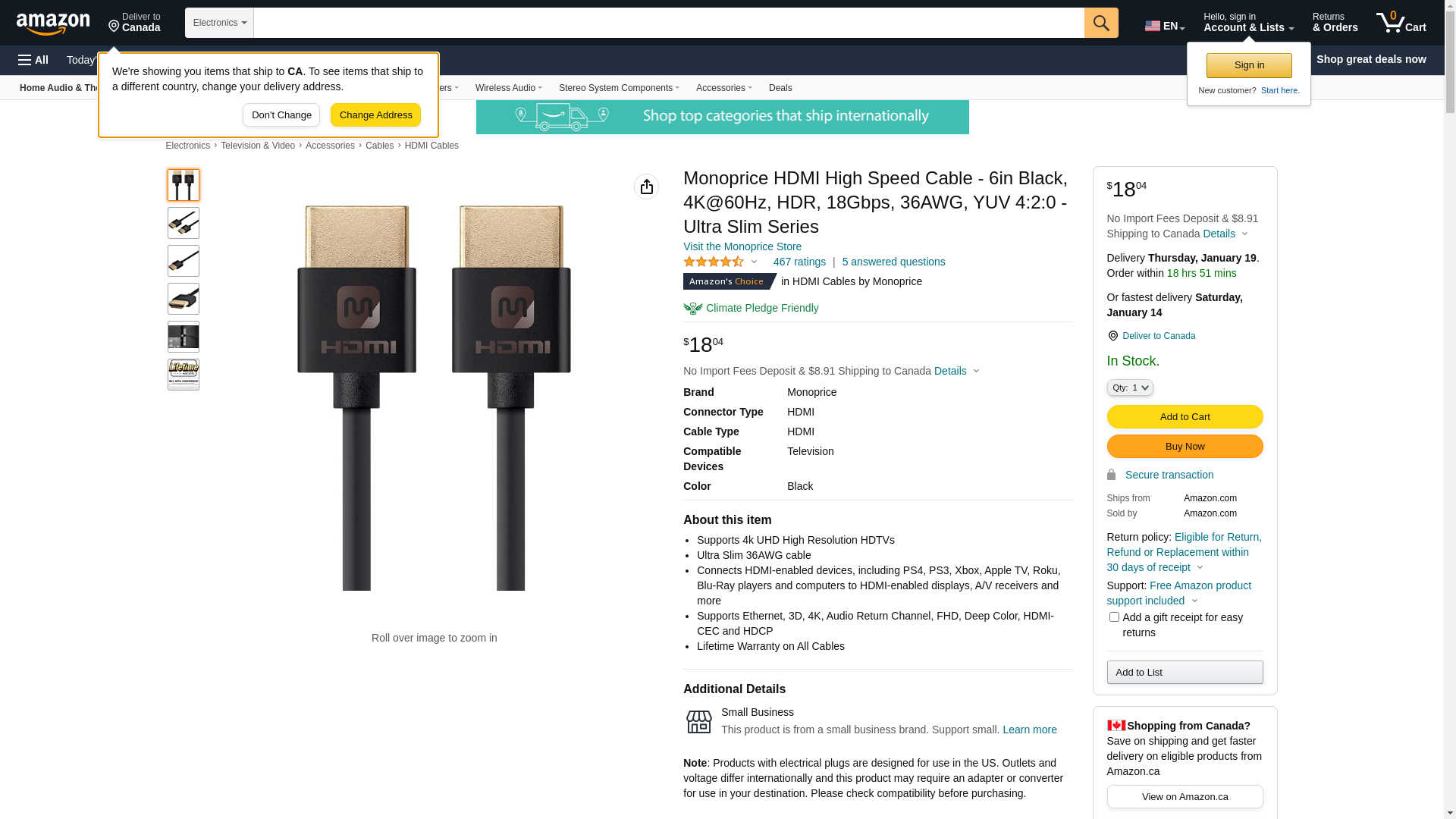 Monoprice HDMI High Speed Cable - 6in Black, 4K@60Hz, HDR, 18Gbps, 36AWG, YUV 4:2:0 - Ultra Slim Series