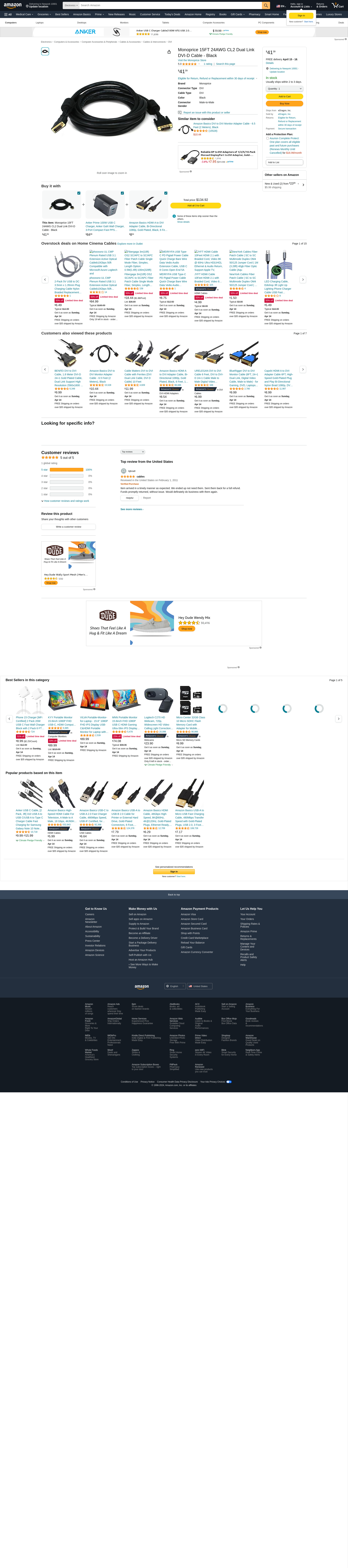 Monoprice 15FT 24AWG CL2 Dual Link DVI-D Cable - Black
