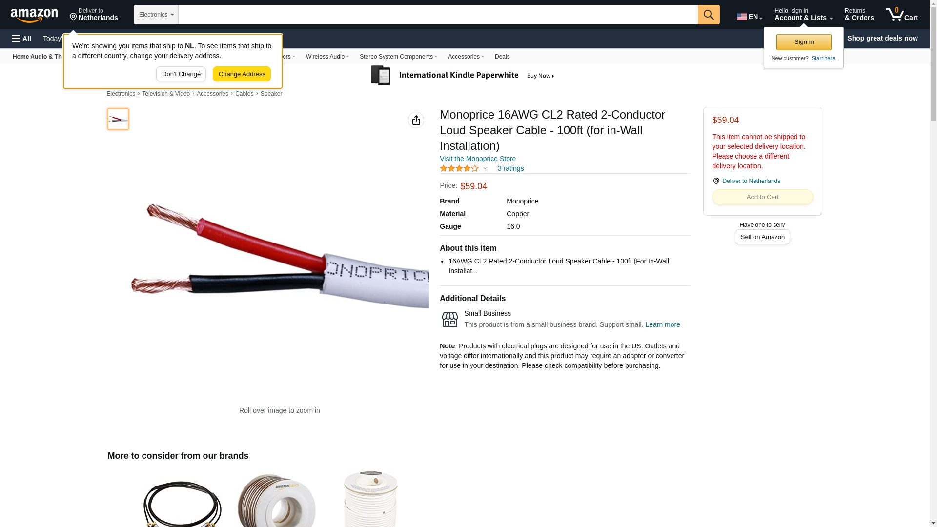 Monoprice 16AWG CL2 Rated 2-Conductor Loud Speaker Cable - 100ft (for in-Wall Installation)