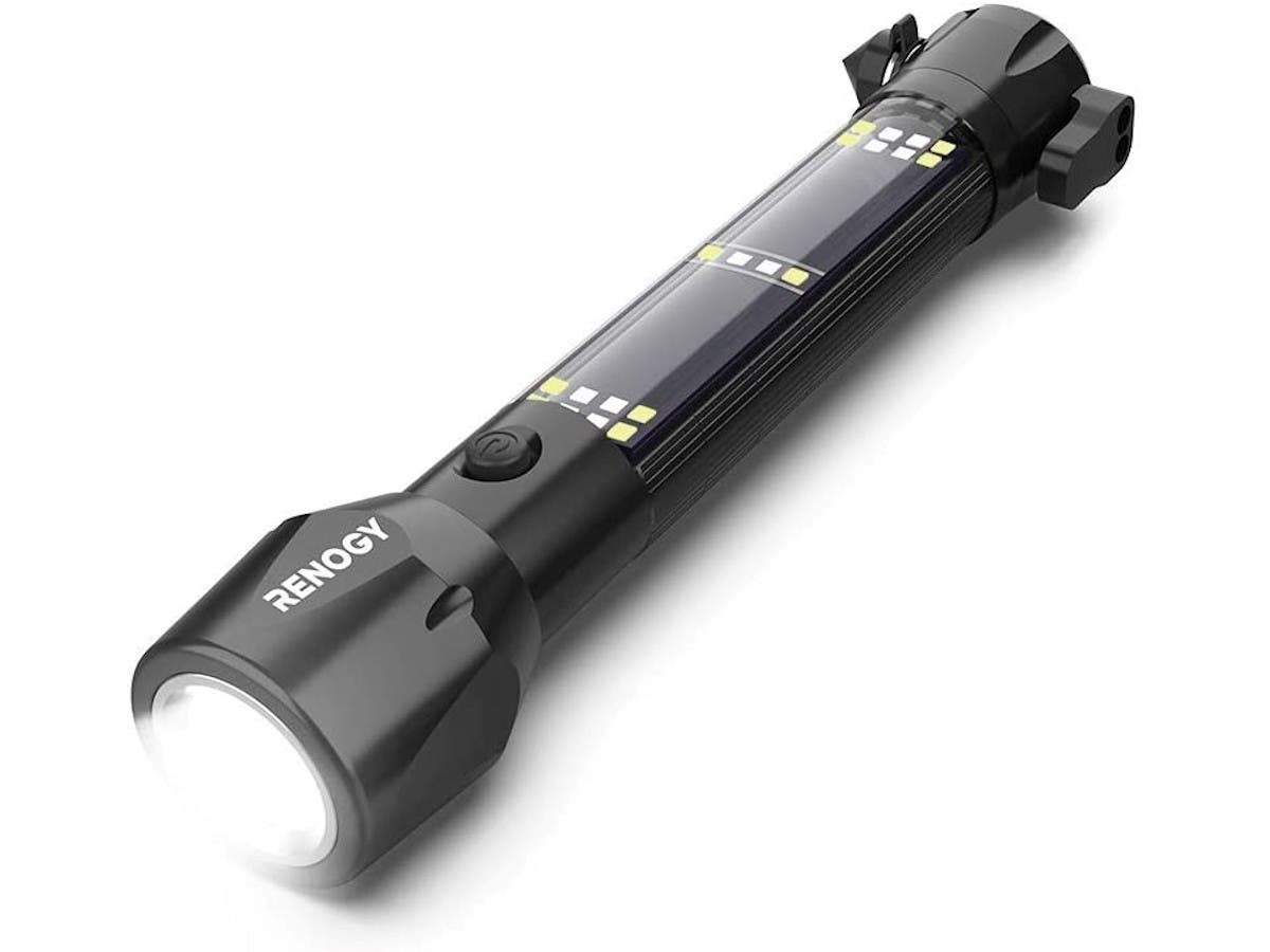 Monoprice 42921 12-In-1 Solar Powered LED Car Flashlight Multi-Function Solar Escape Rescue Flashlight with 2000mAh Batt