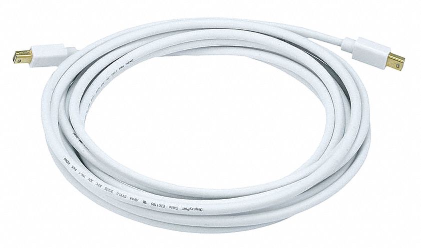 Computer Video Cable, Mini DisplayPort Male to Male, Cable Length 15 ft, Gauge 32 AWG, Color White, Standards UL