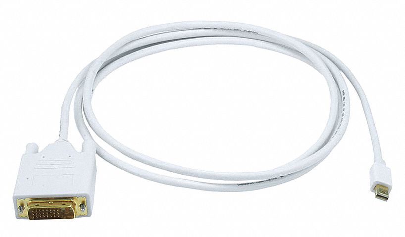 Computer Video Cable, Mini DisplayPort to DVI-D Single Link Male, Cable Length 6 ft, Gauge 32 AWG, Color White, Standards UL