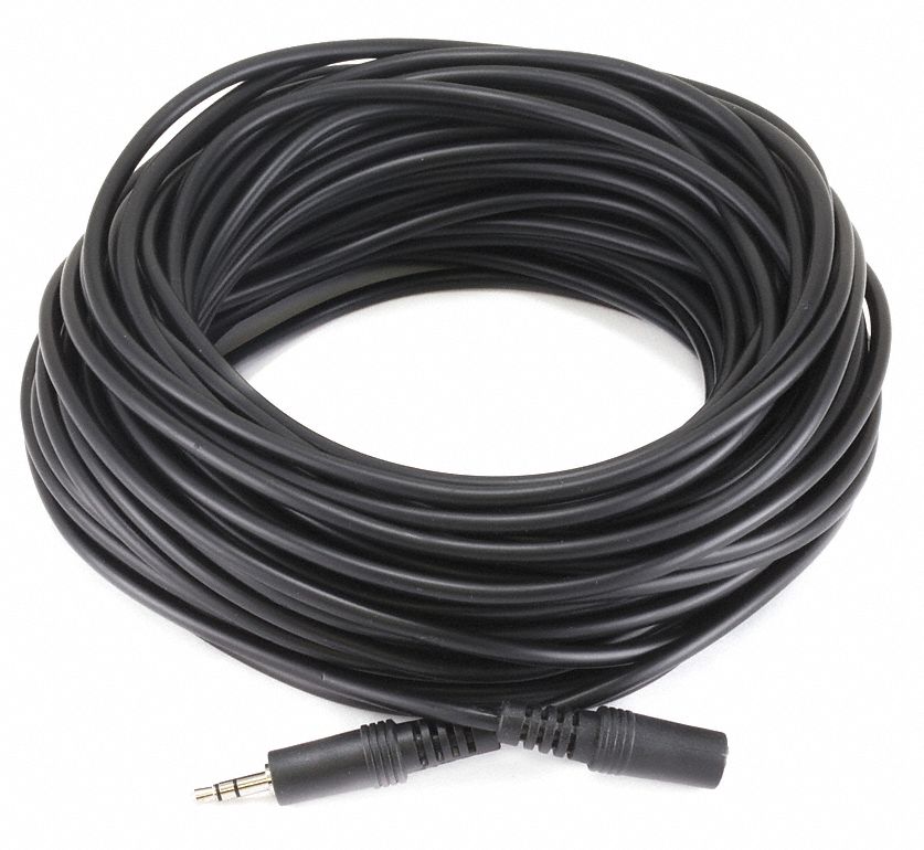 Audio Extension Cable, Stereo Audio, Black, Length 50 ft, PVC Jacket Material, Connector Type 3.5mm Stereo TRS Male/3.5mm Stereo TRS Female, For Use With Portable Audio Devices