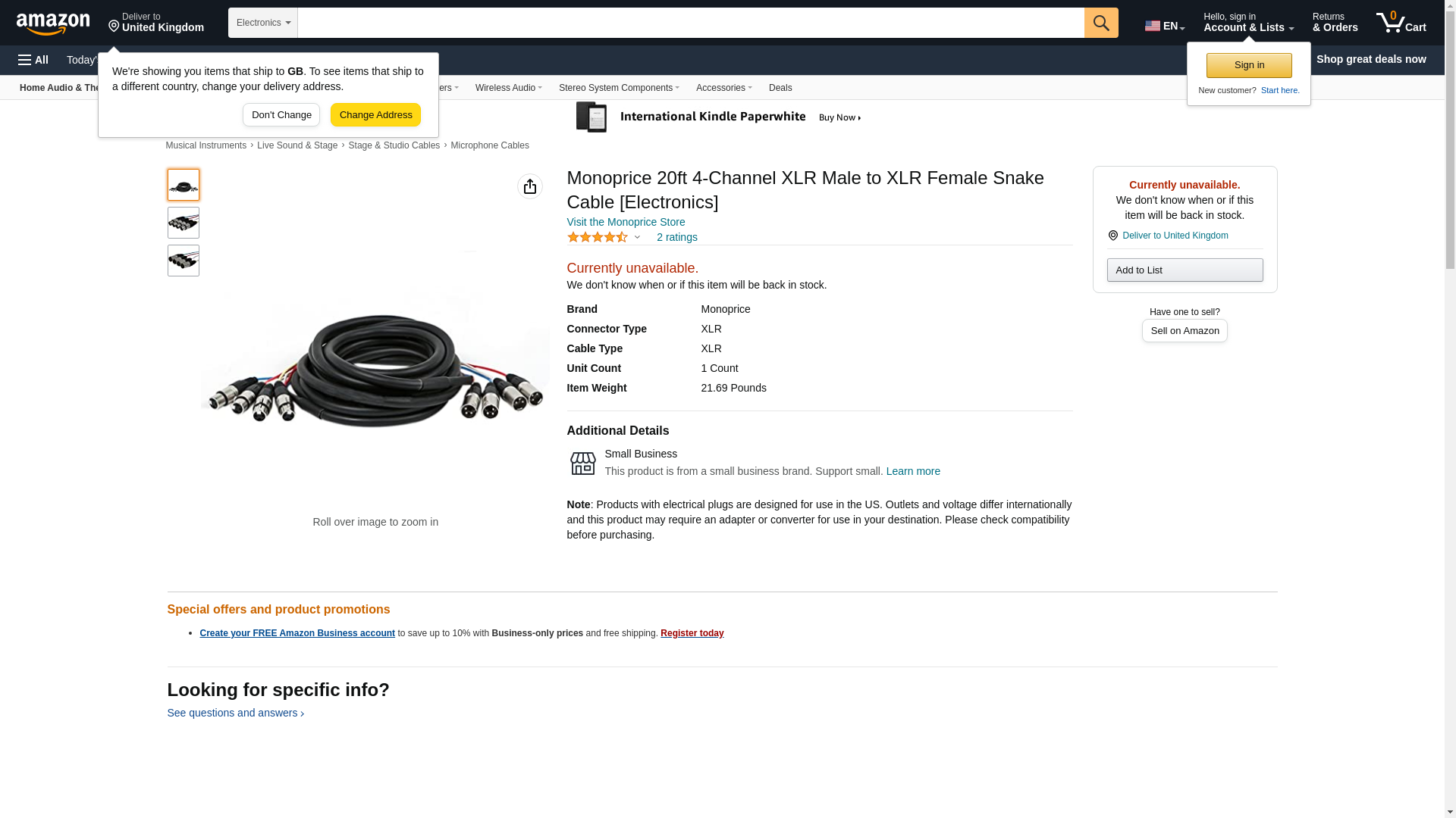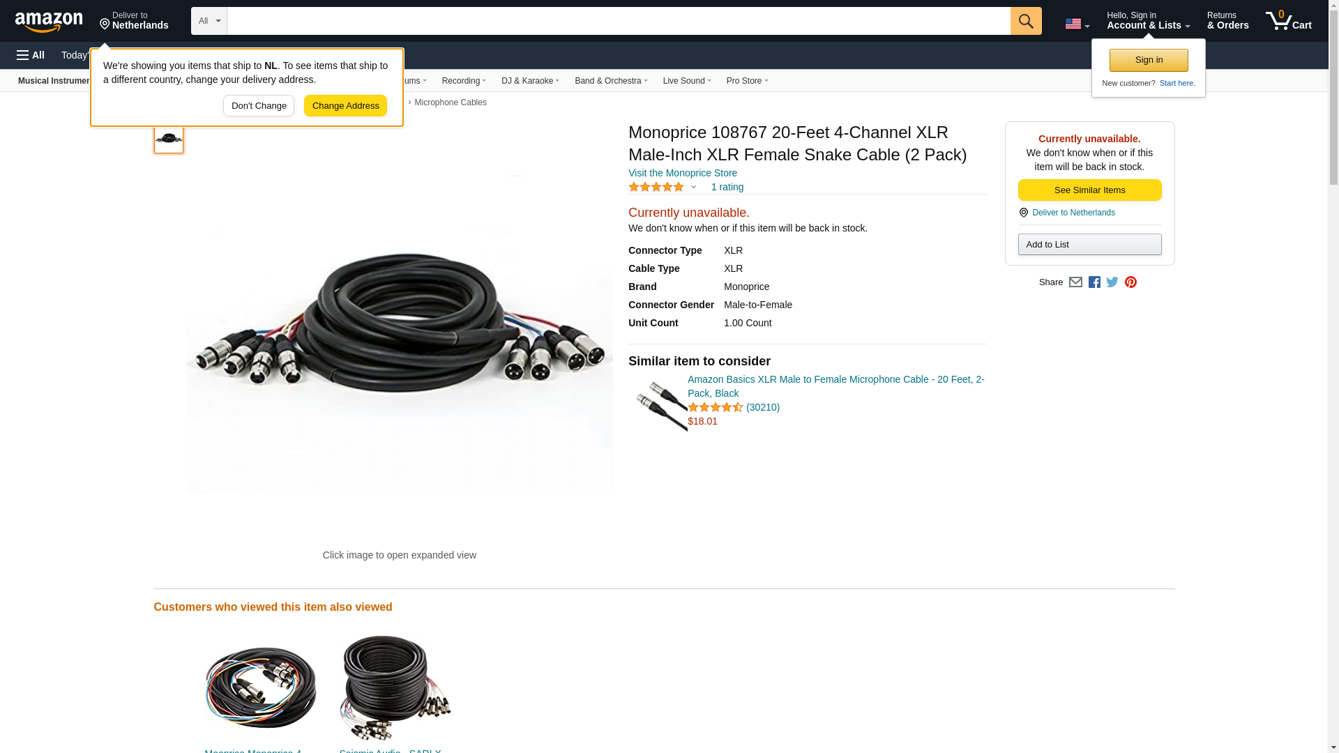 Monoprice 20ft 4-Channel XLR Male to XLR Female Snake Cable [Electronics]