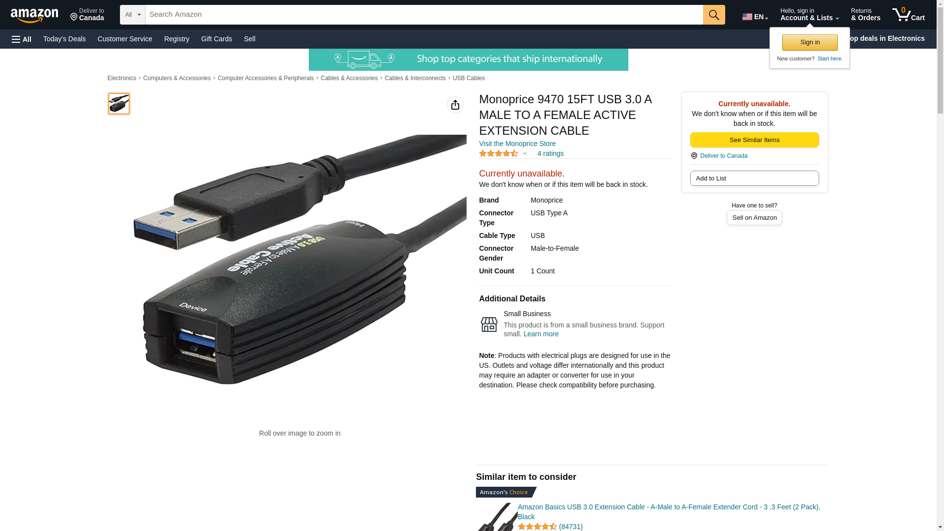 Monoprice 9470 15FT USB 3.0 A MALE TO A FEMALE ACTIVE EXTENSION CABLE