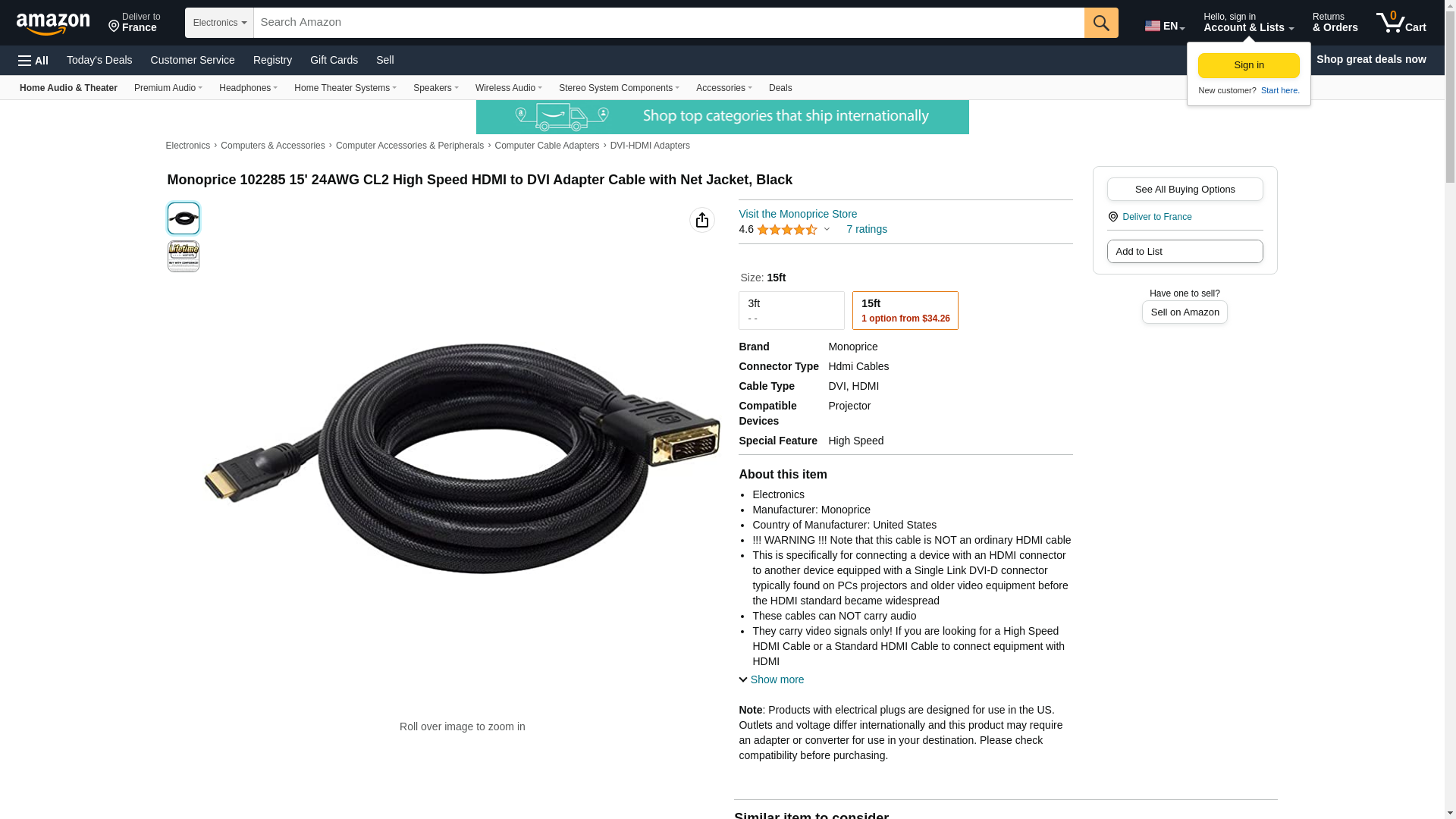 Monoprice 102285 15' 24AWG CL2 High Speed HDMI to DVI Adapter Cable with Net Jacket, Black